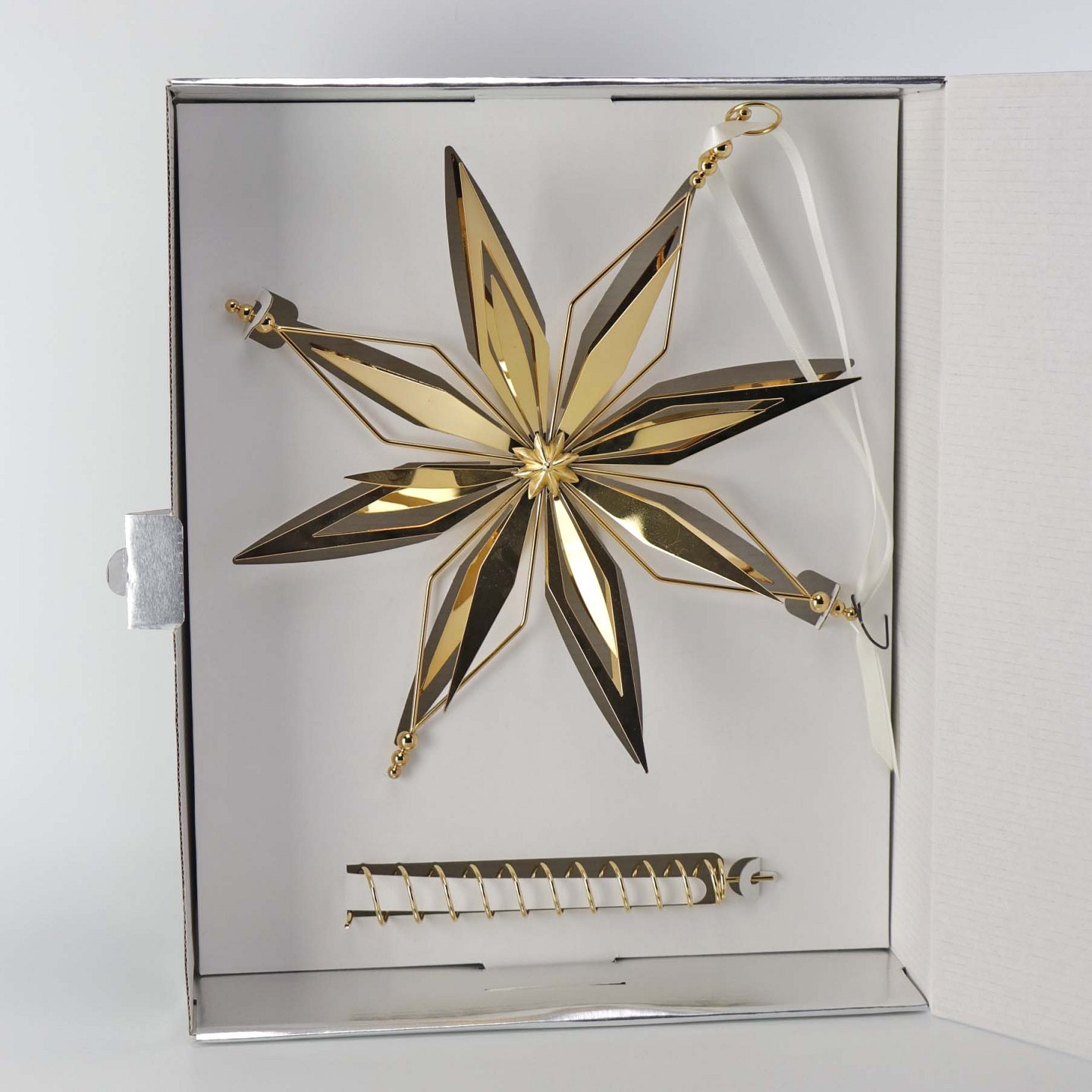 Topstjerne og juleuro i én og samme model med ophæng og spiral fod. Julestjernen er belagt med 25 karat guld og i original boks. Model Johanne