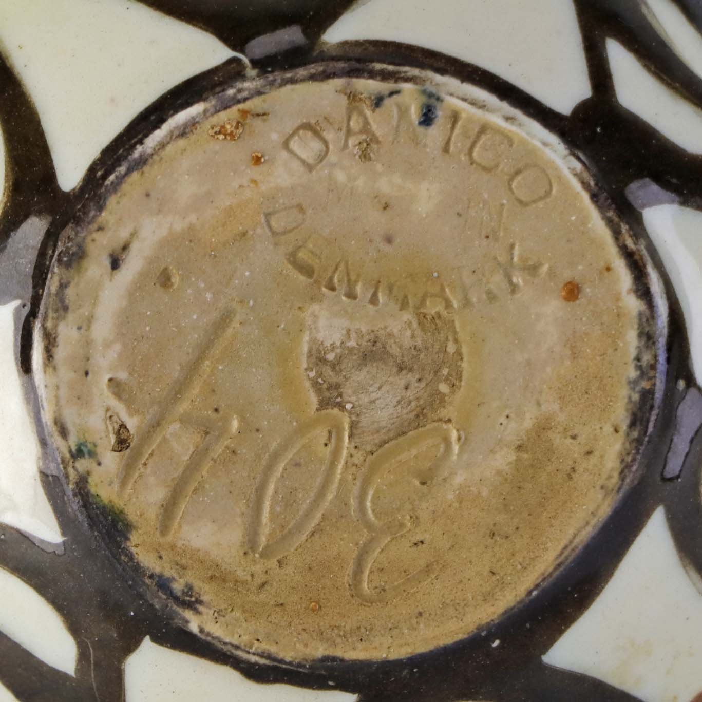 Fremstår med et mindre nøk i glasuren ved topkanten samt mindre krakkeleringer i glasuren.