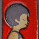 Relief i delvist glaseret stentøj med motiv af et barn med blomster. Nr. 5590