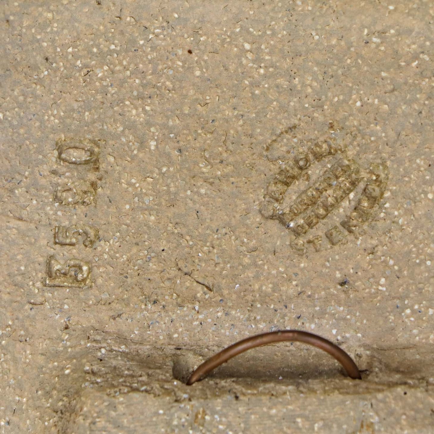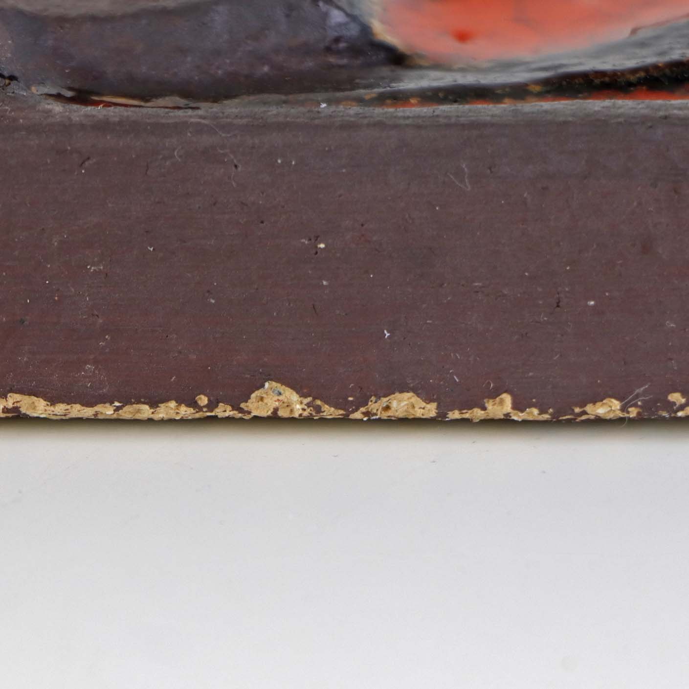 Fremstår med mindre nøk i stentøjet på bagkanten af relieffet.