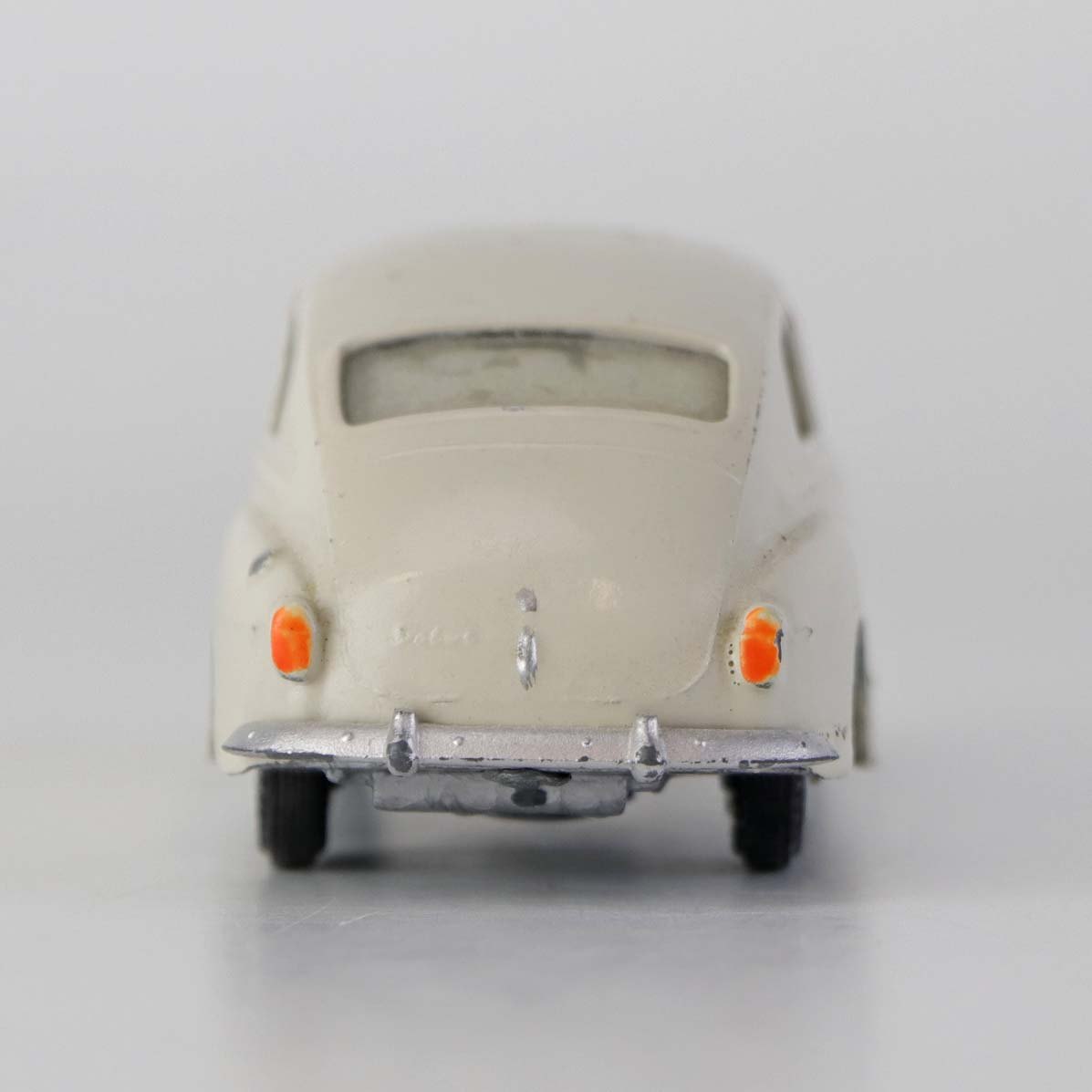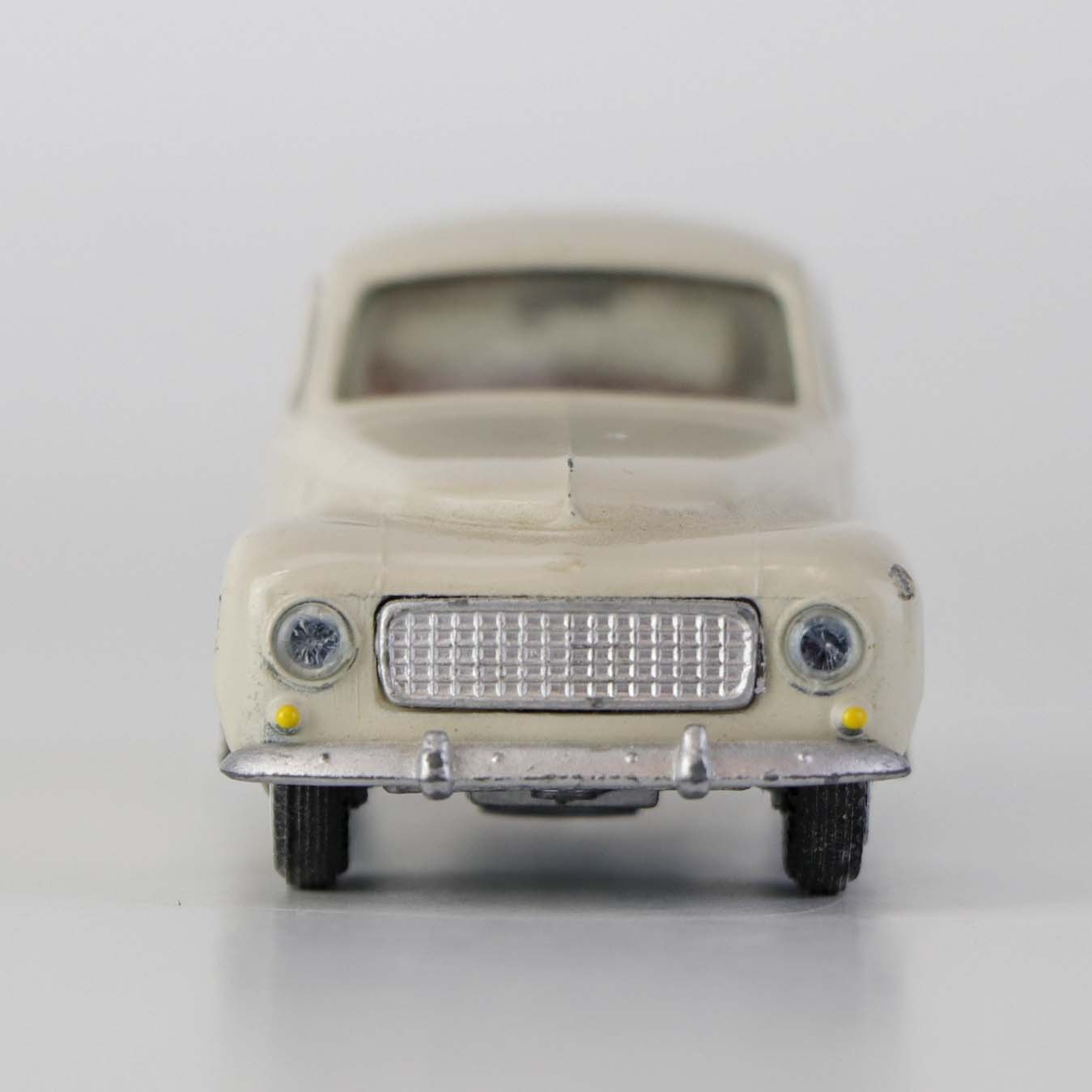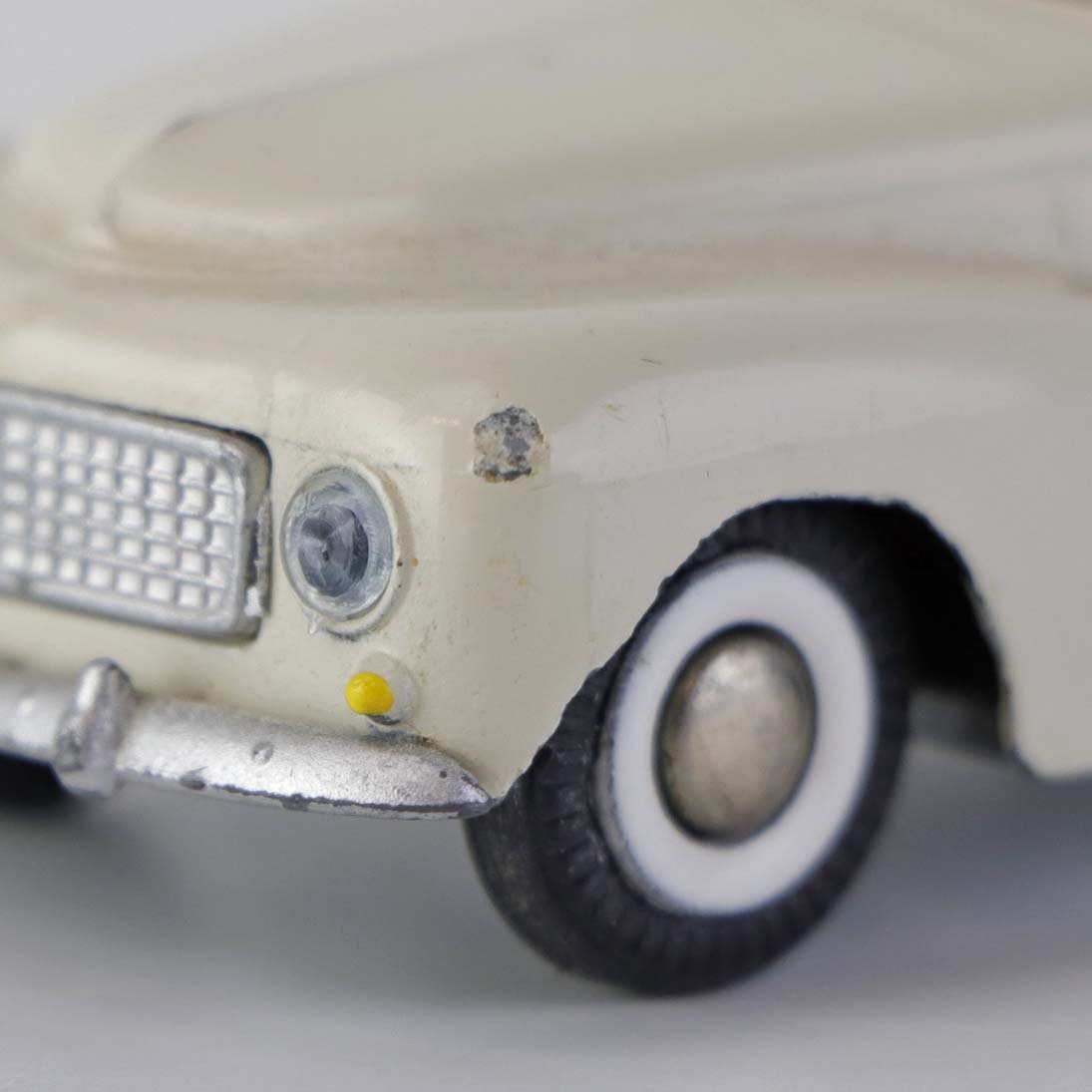 Hvid Volvo PV 544 legetøjsbil i lakeret metal med gummi hjul. Nr. 822
