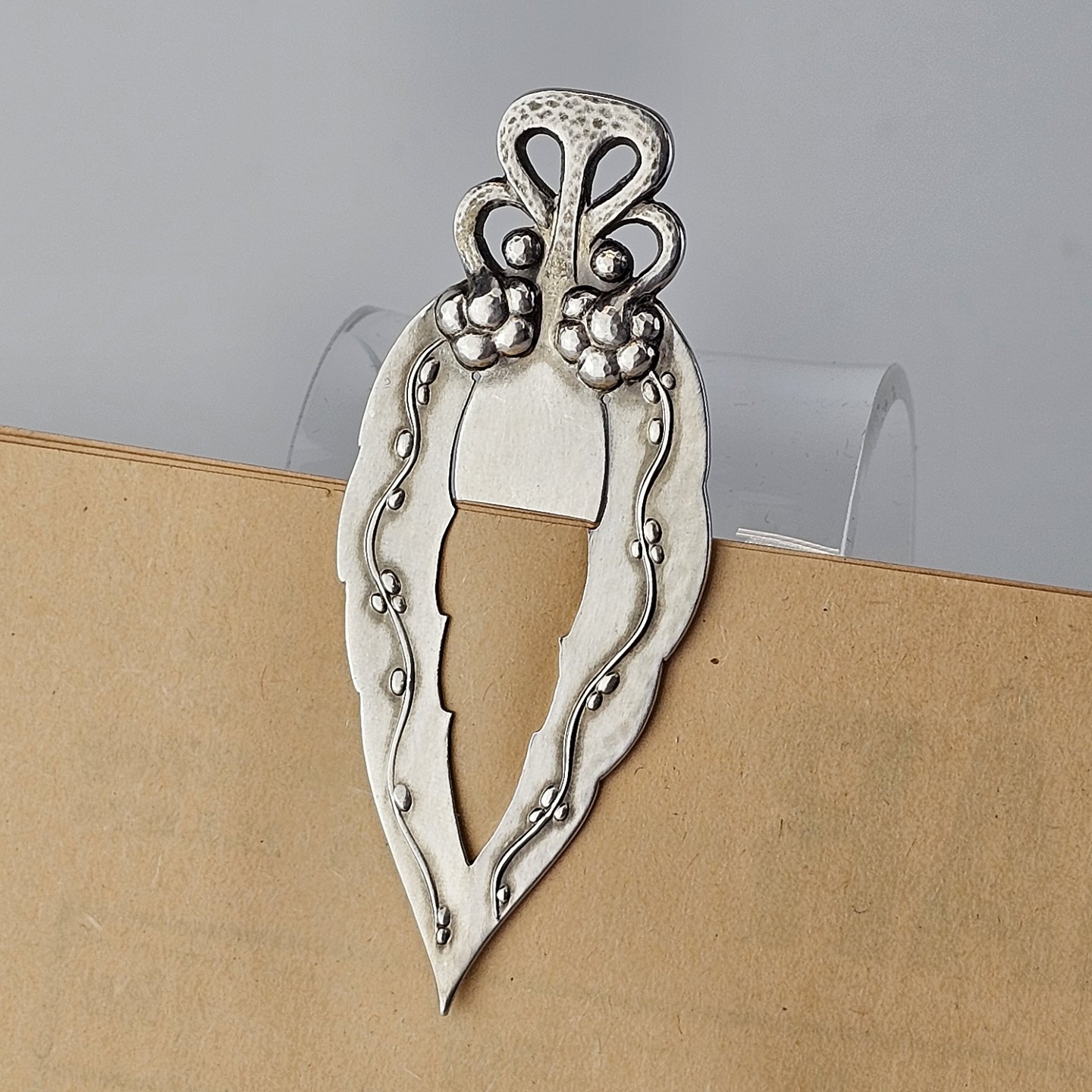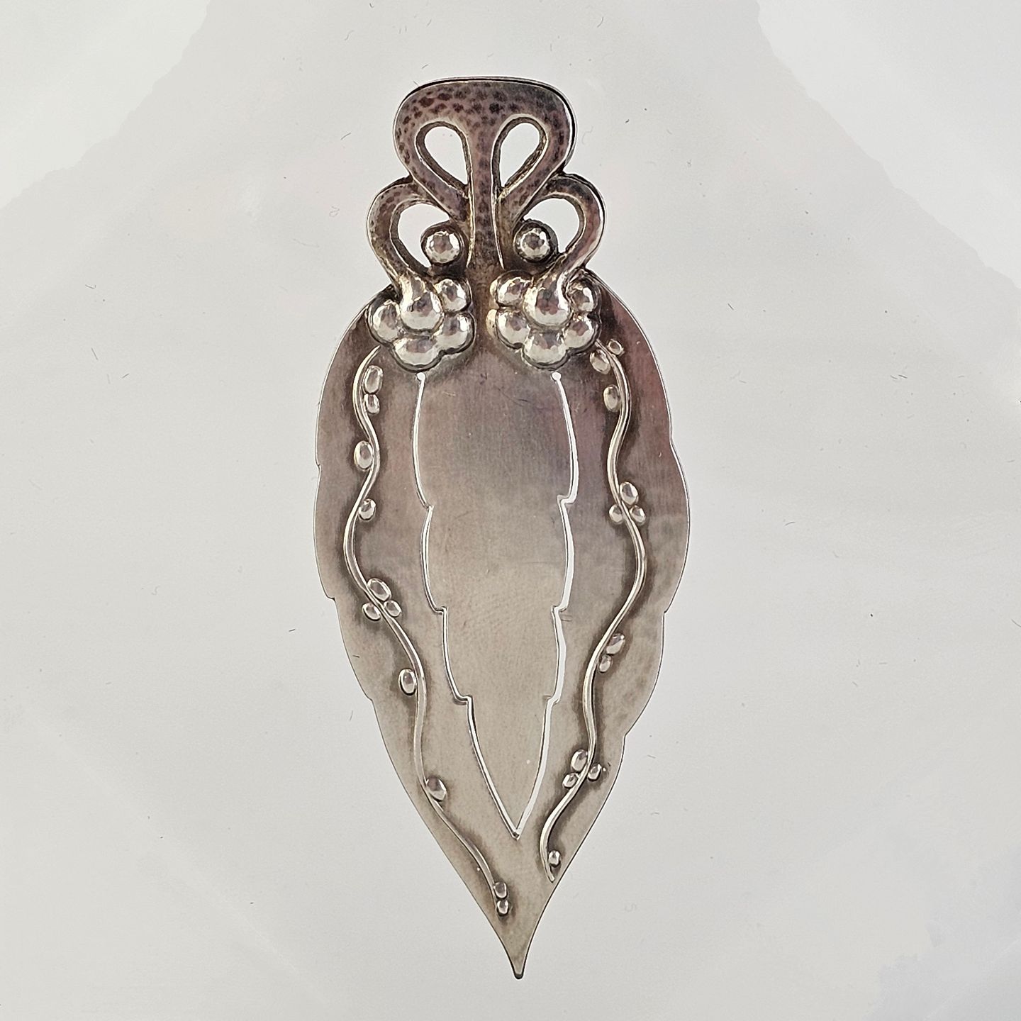 Bogmærke af sølv med dekoration af ranker.