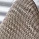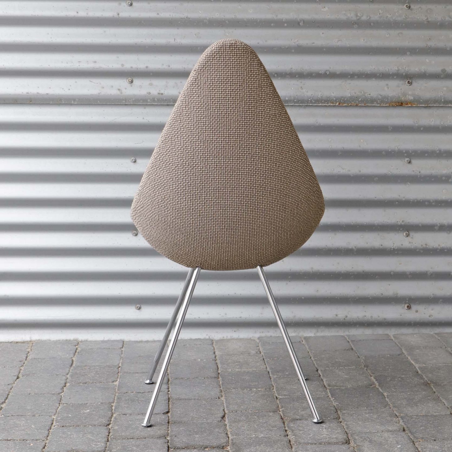 Spisebordsstol med ben i rustfrit stål og polstret sæde betrukket med struktureret stof i beige og sort. Model Dråben nr. 3110