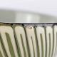 Mindre skål i glaseret keramik med stribet mønster i sort, hvid og grøn med grå inderside.