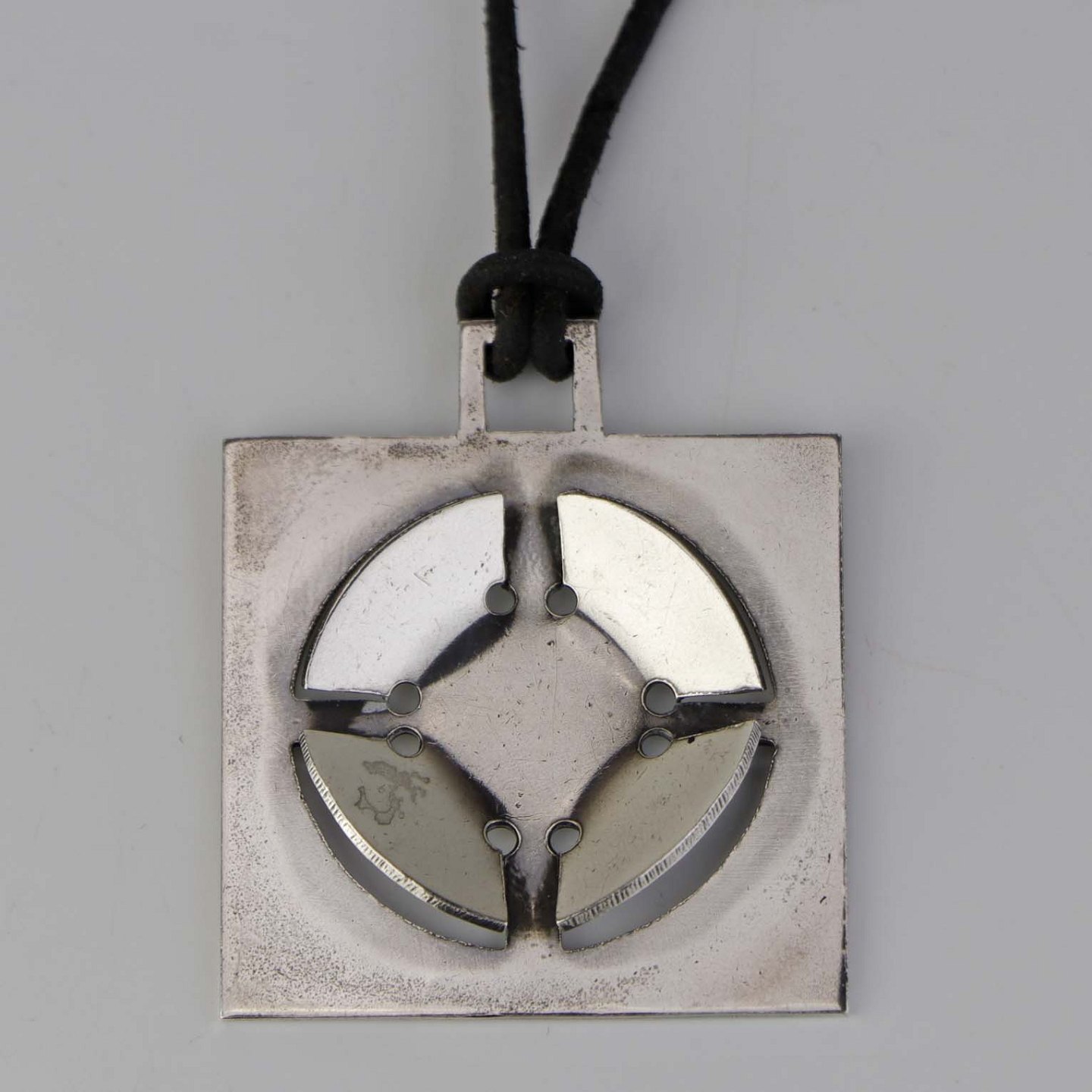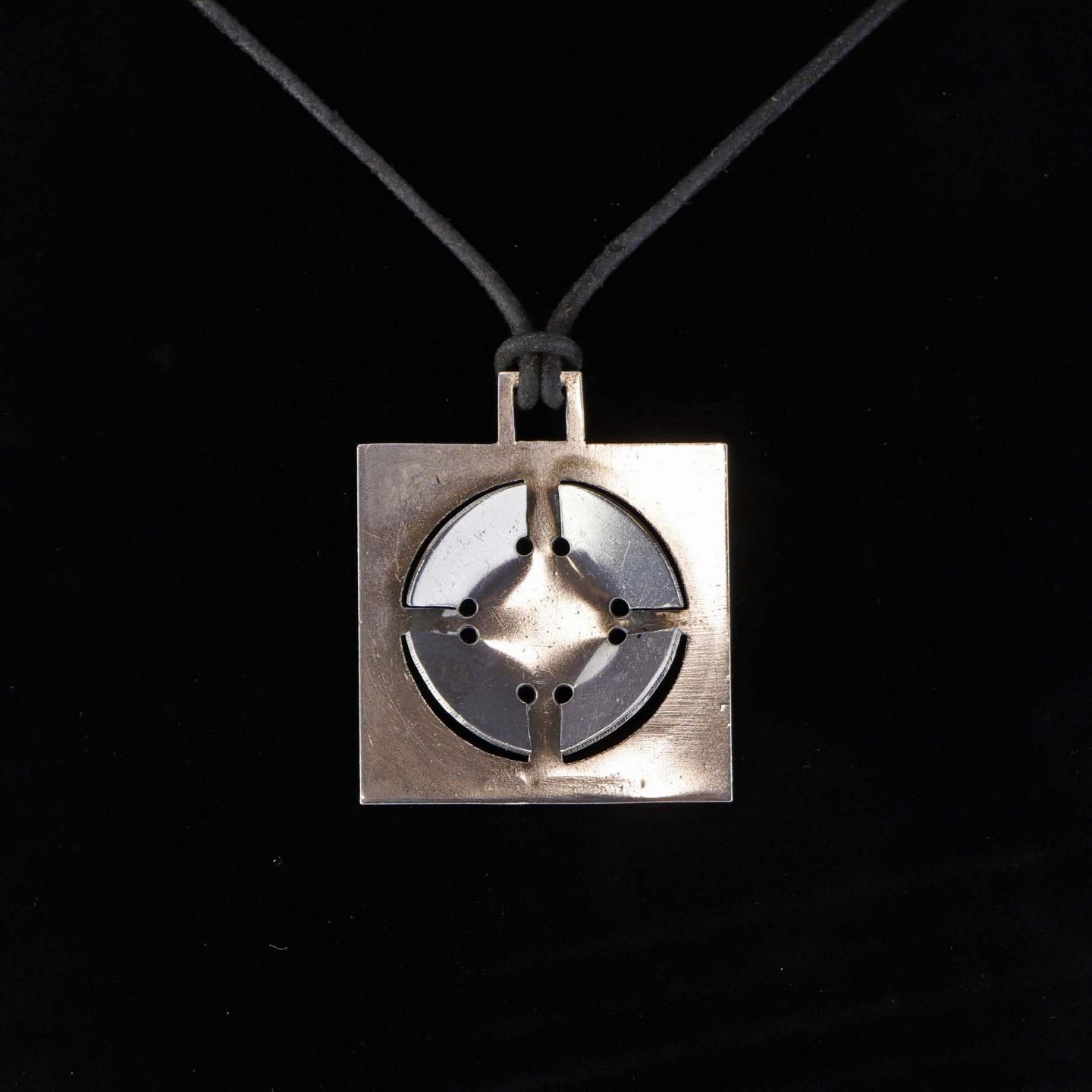 Halskæde med lædersnor og kvadratisk vedhæng i sterling sølv.
