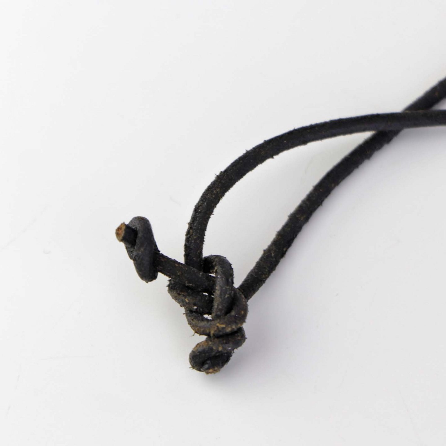 Fremstår med mindre brugsspor ved læderknuden samt på vedhænget.