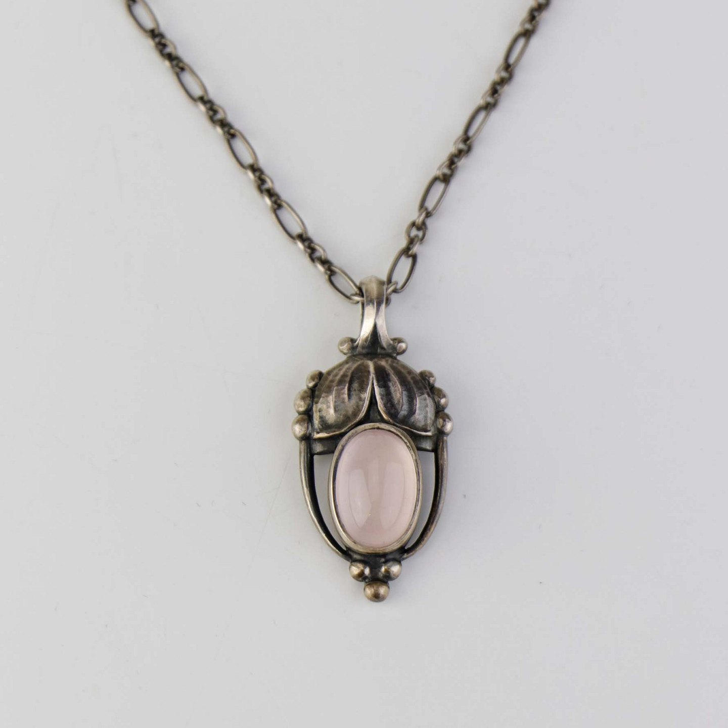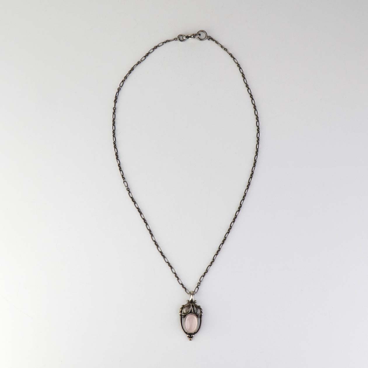 Halskæde i sterling sølv med indsat rosenkvarts fra serien Heritage. Årssmykke 2003.