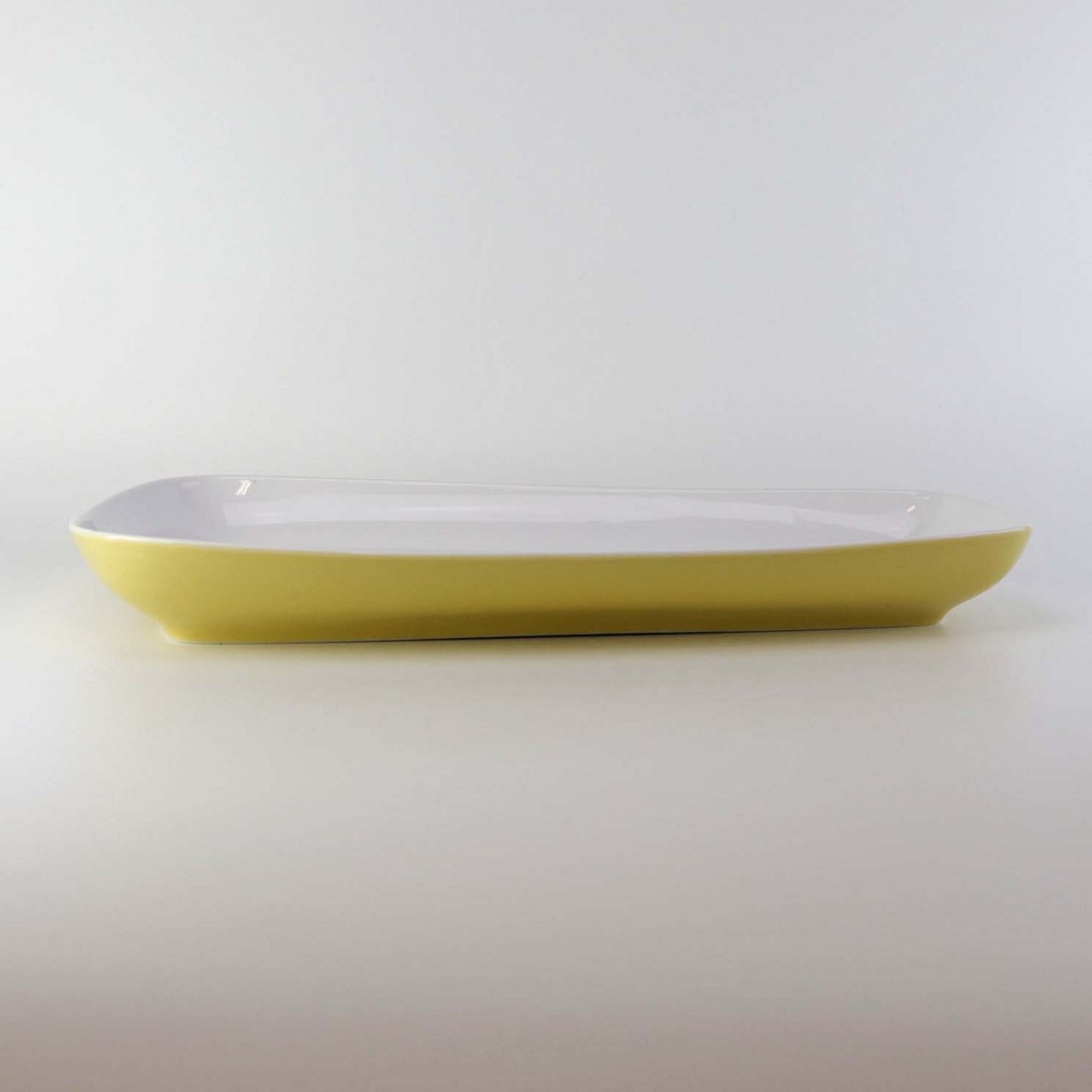 Stort trekantet serveringsfad i porcelæn fra stellet Gul glasurfarvet.