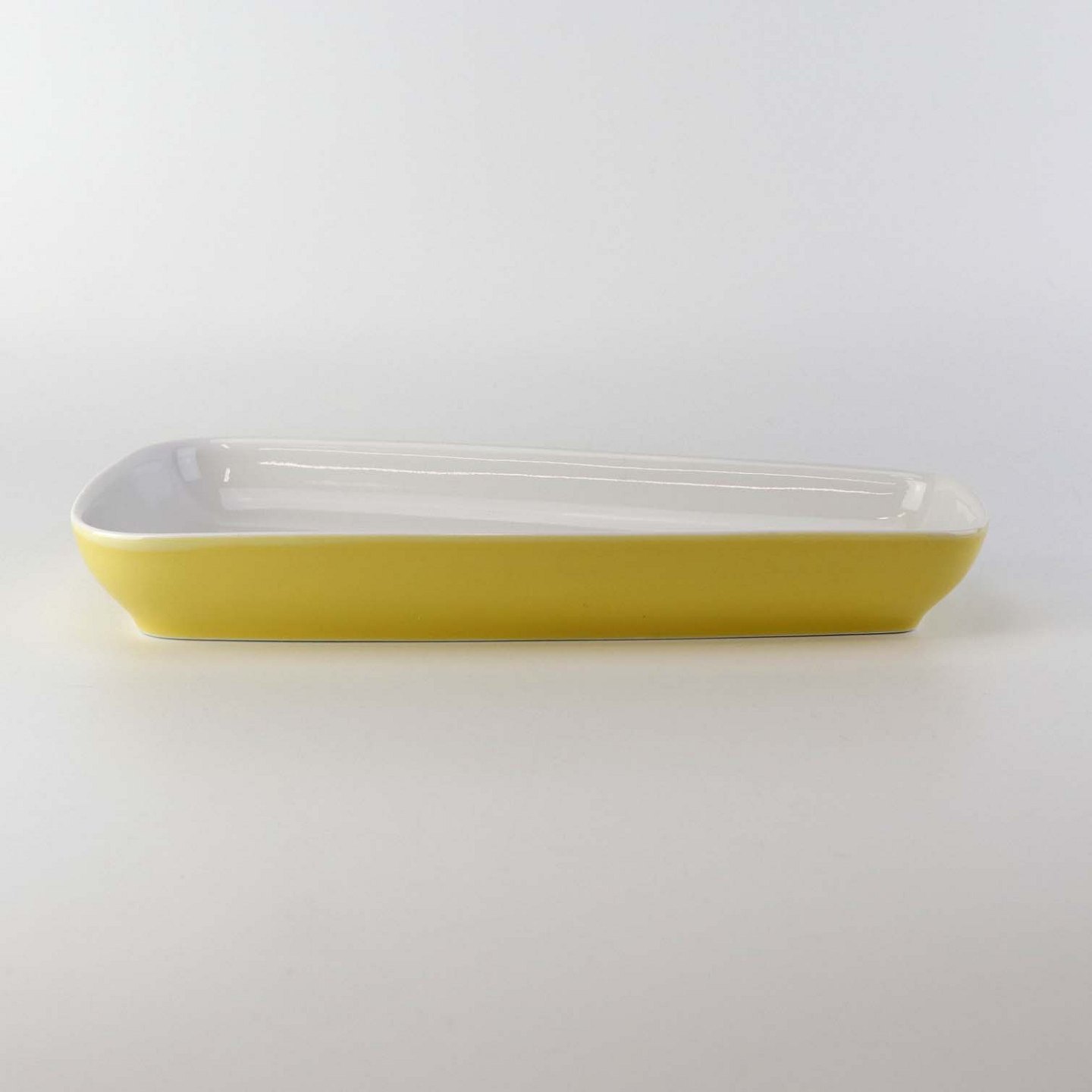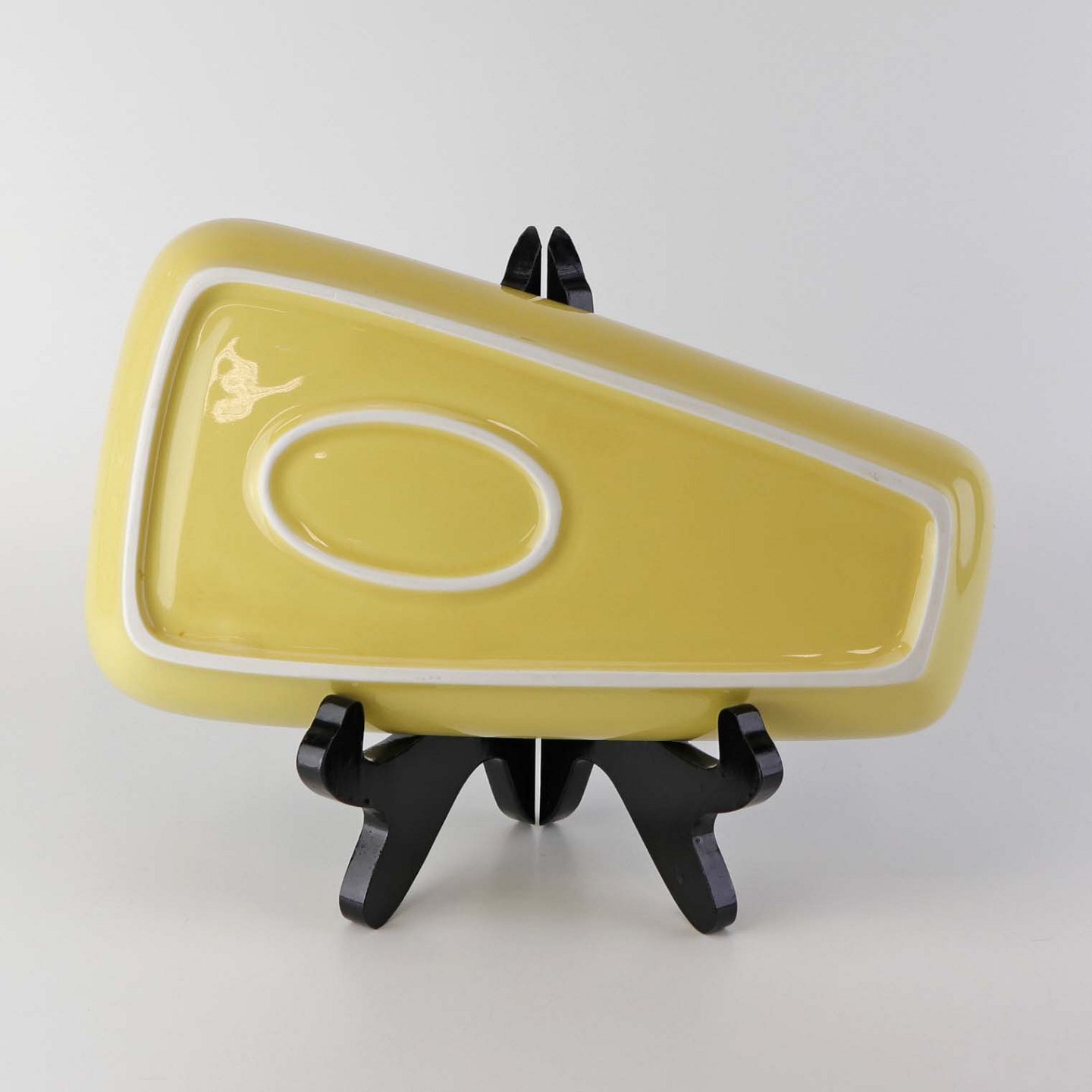 Lille trekantet serveringsfad i porcelæn fra stellet Gul glasurfarvet.