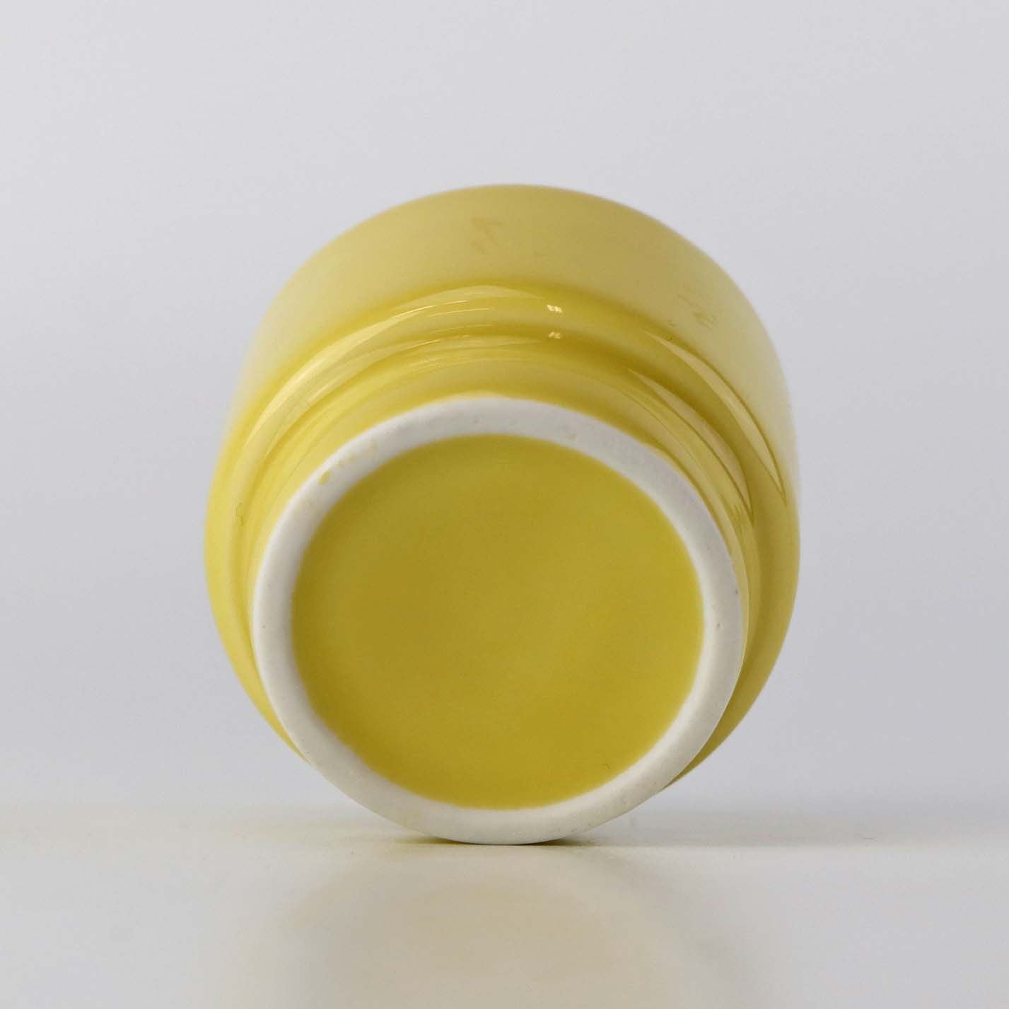 Stellet er fremstillet i ildfast glat porcelæn dekoreret med gul glaseret yderside og hvid glaseret inderside.
