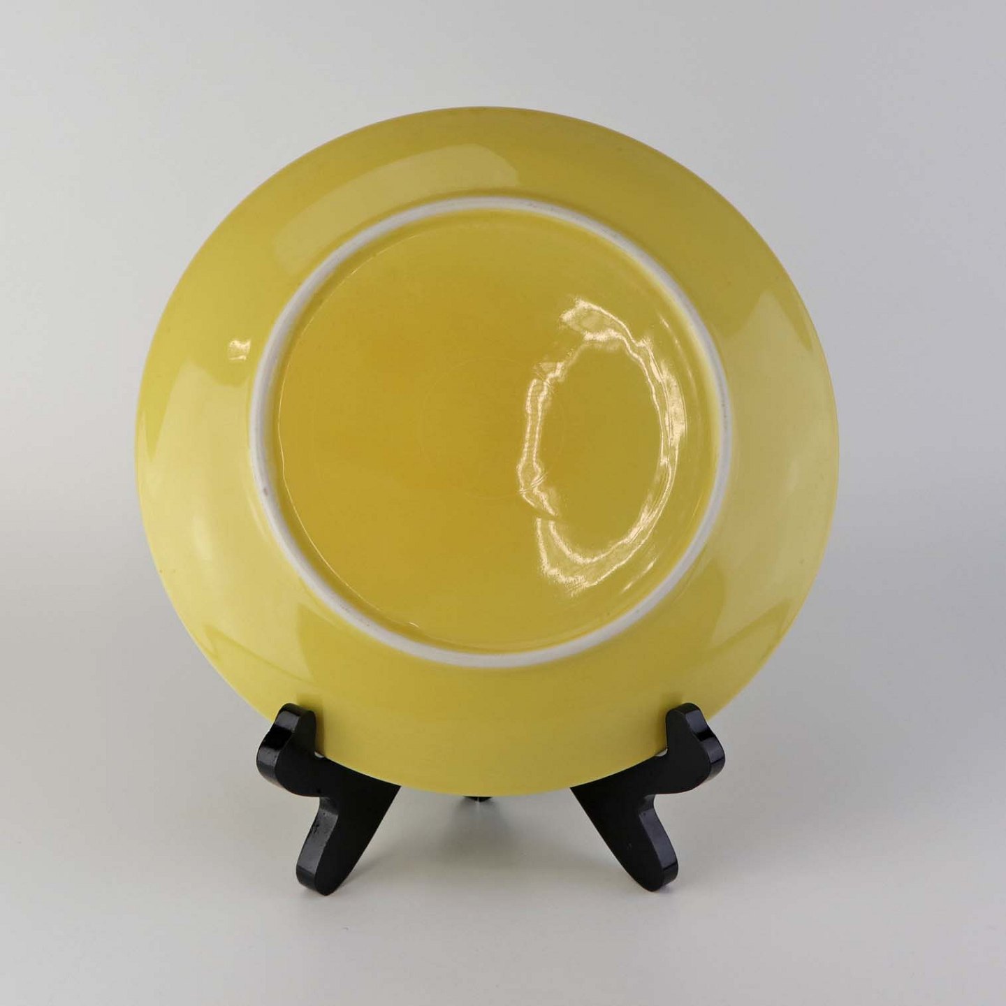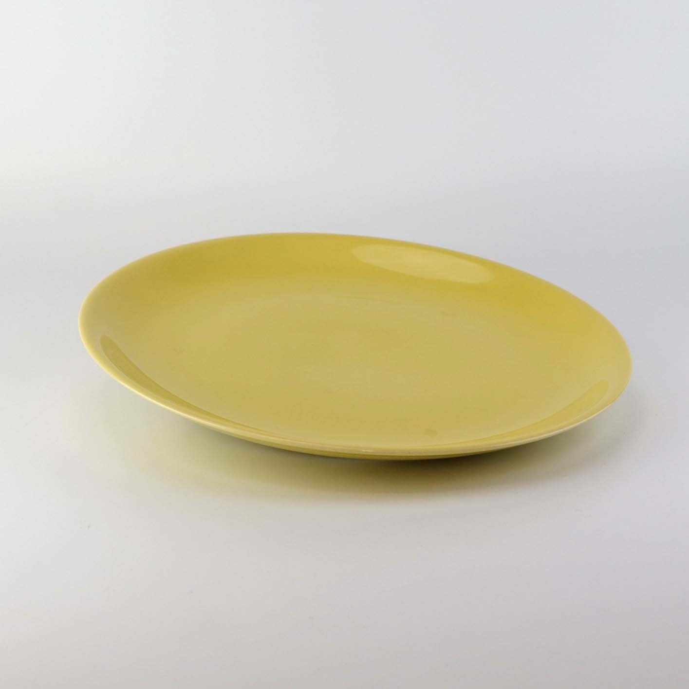 Flad middagstallerken i porcelæn fra stellet Gul glasurfarvet.
