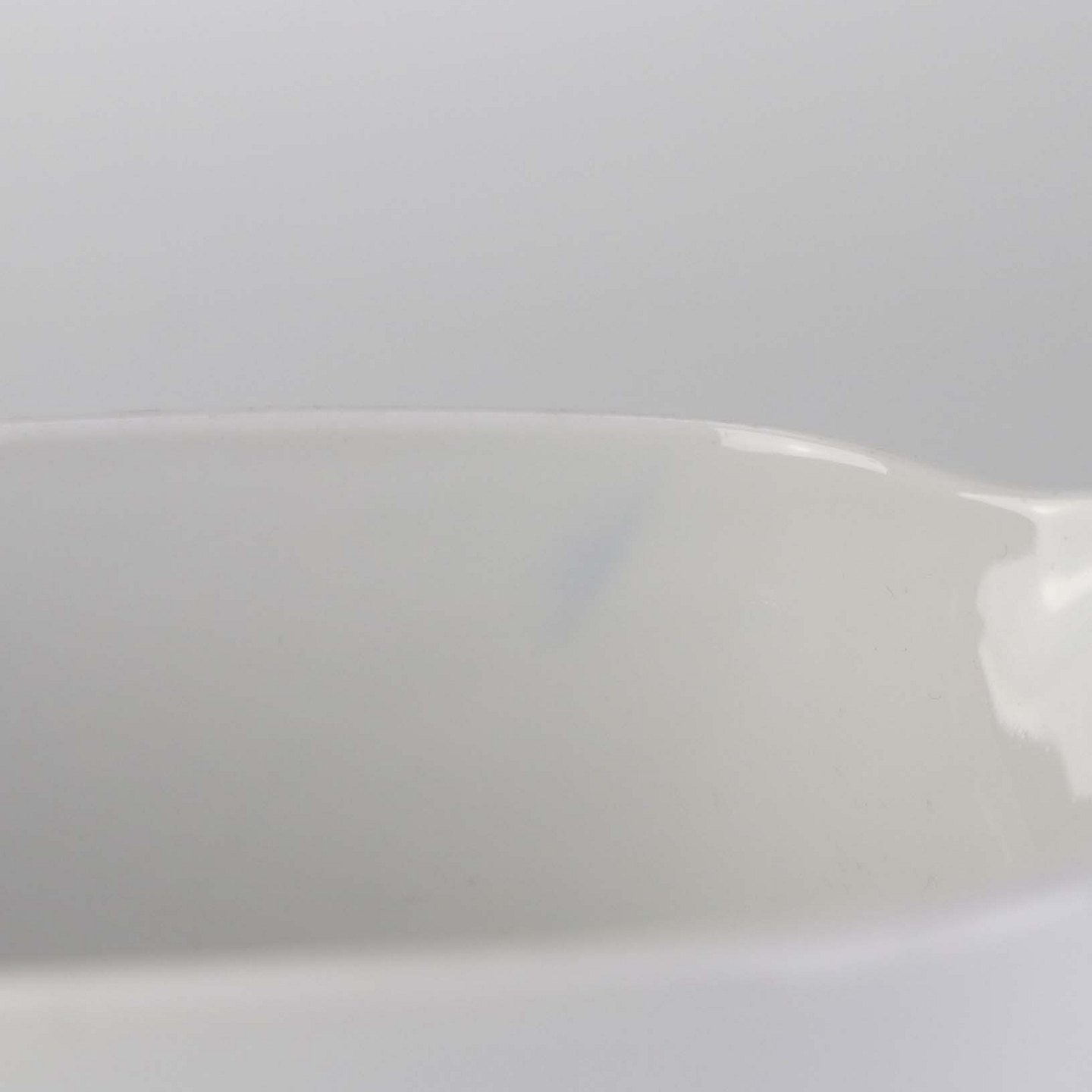 Fremstår med mindre mørkere farvning i glasuren et enkelt sted ved topkanten.