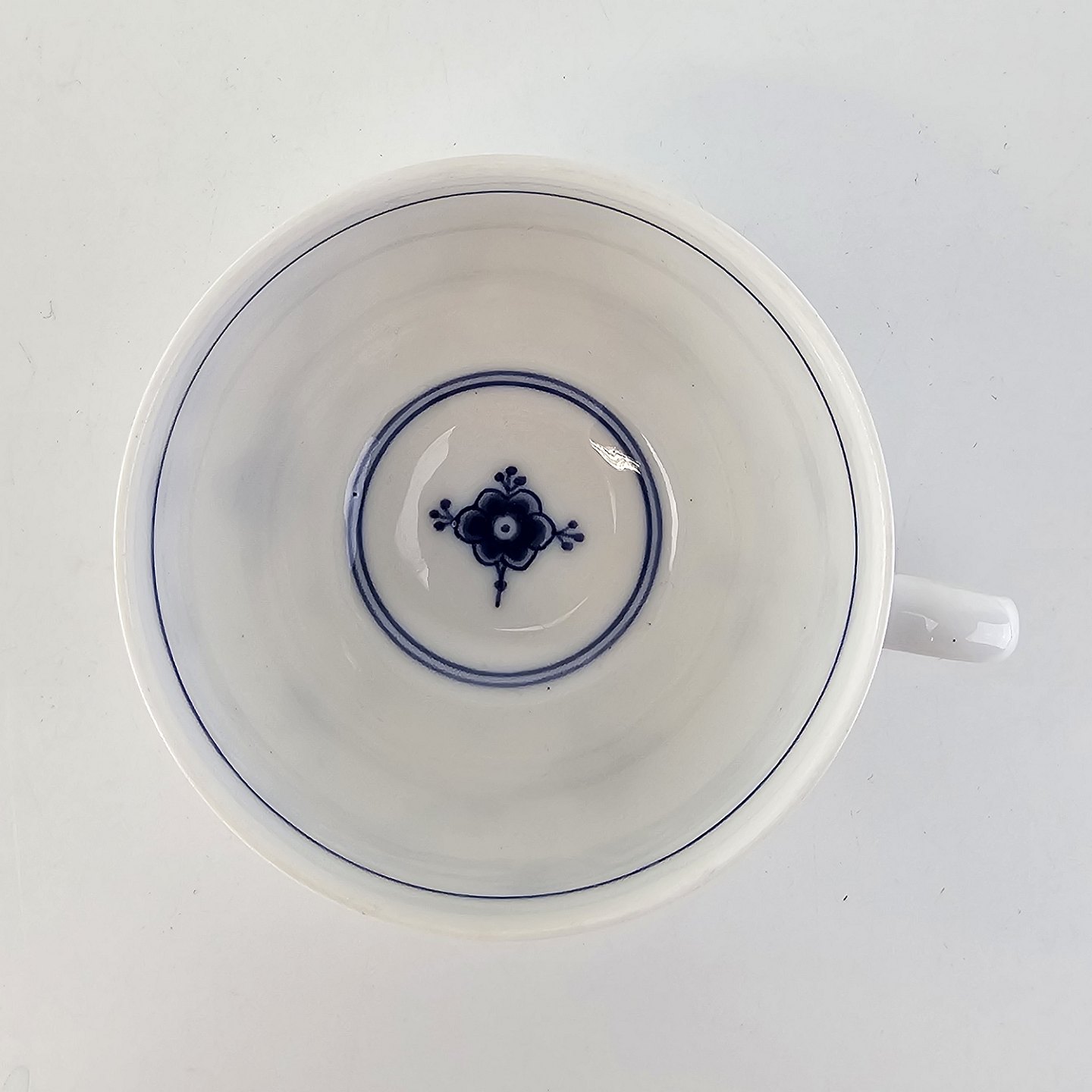 Kop og underkop i hvidt porcelæn fra stellet Musselmalet Riflet