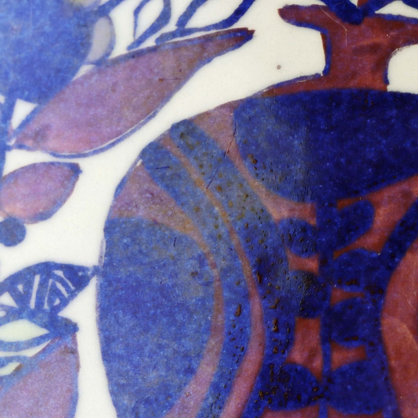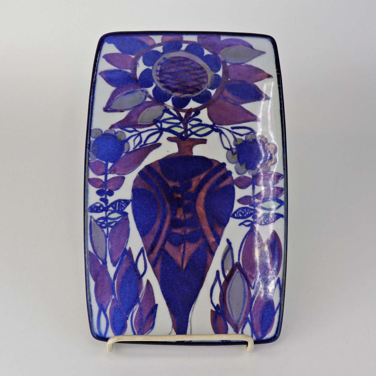 Smørbrik i fajance fra serien Tenera med motiv af blomster og vase i blå og lilla nuancer. Nr. 176/2901