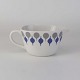 Stel produceret i perioden 1961-69 fremstillet i glat hvidt porcelæn dekoreret med blå og grå dråber.