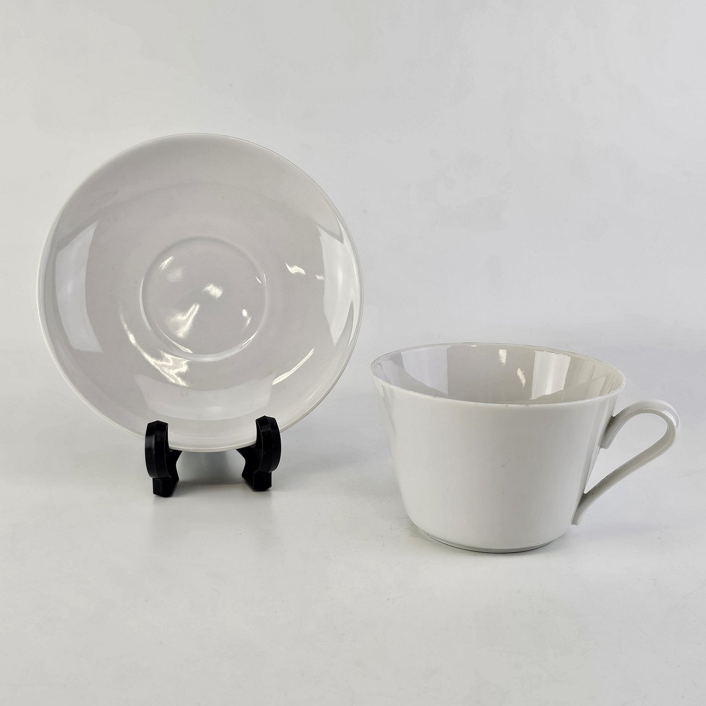 Kaffekop med underkop i porcelæn fra stellet Hvid Glasurfarvet