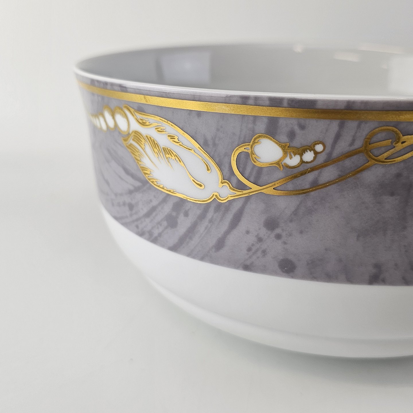 Skål med grå marmoret bort dekoreret med gylden blomsterknop