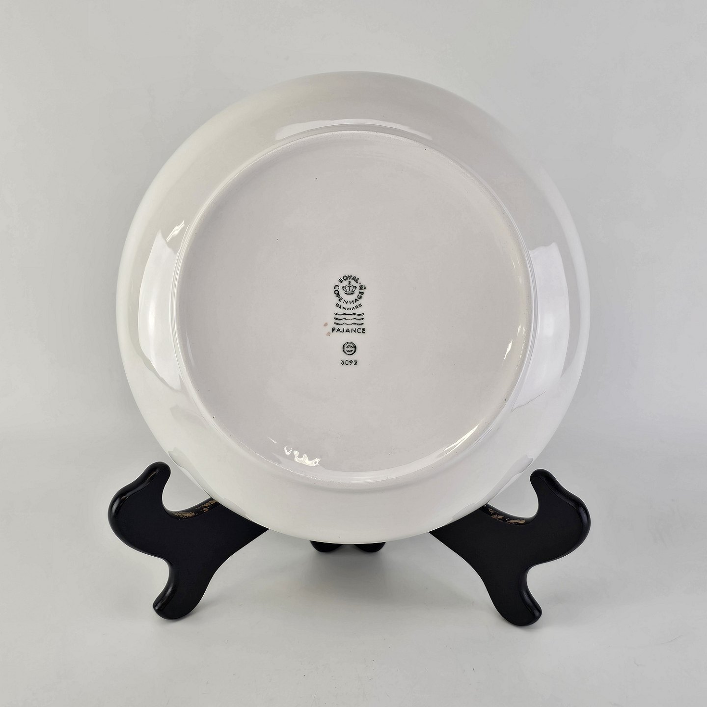 Stellet er fremstillet i glat hvid fajance med dekoration af en simpel stribe i forskellige farver