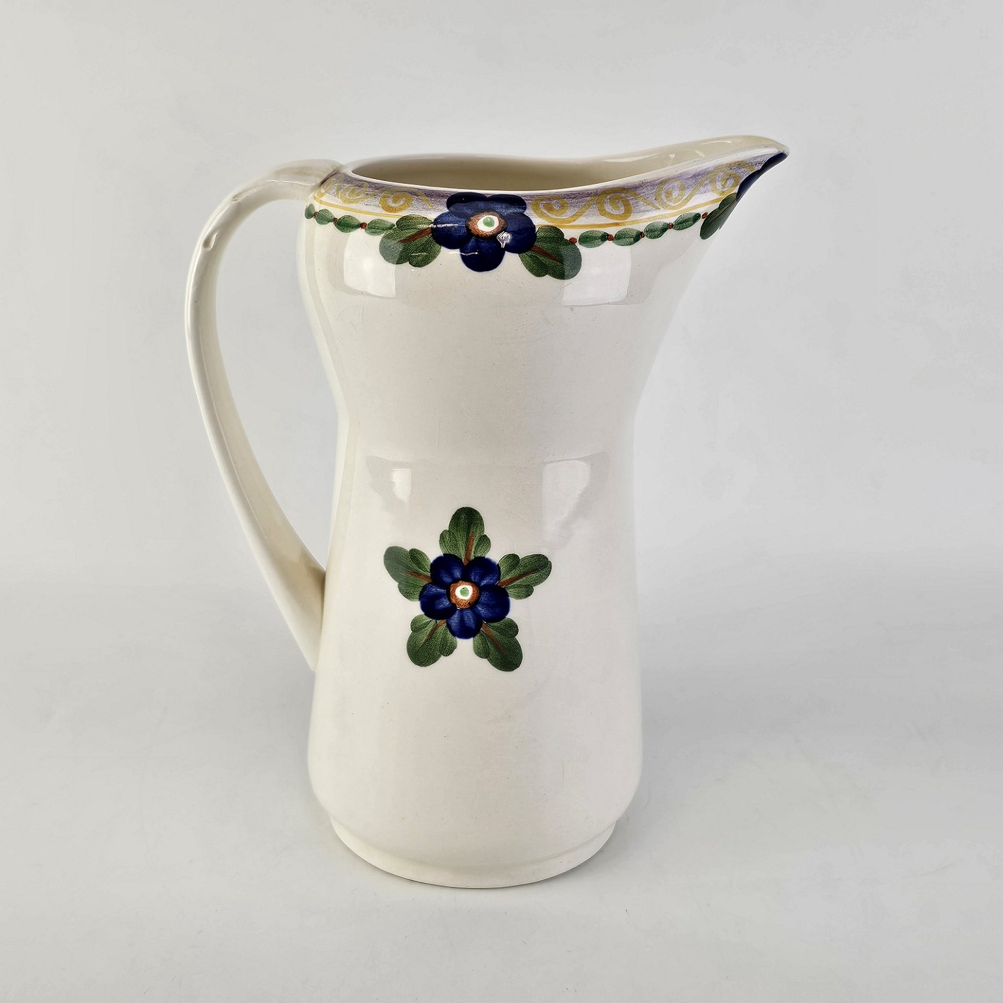 Stellet er i hvid fajance og håndmalet med dekoration af blå violer