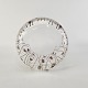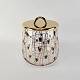 Kagedåse af glas med mønster af røde hjerter og guldstreger, og gyldent låg
