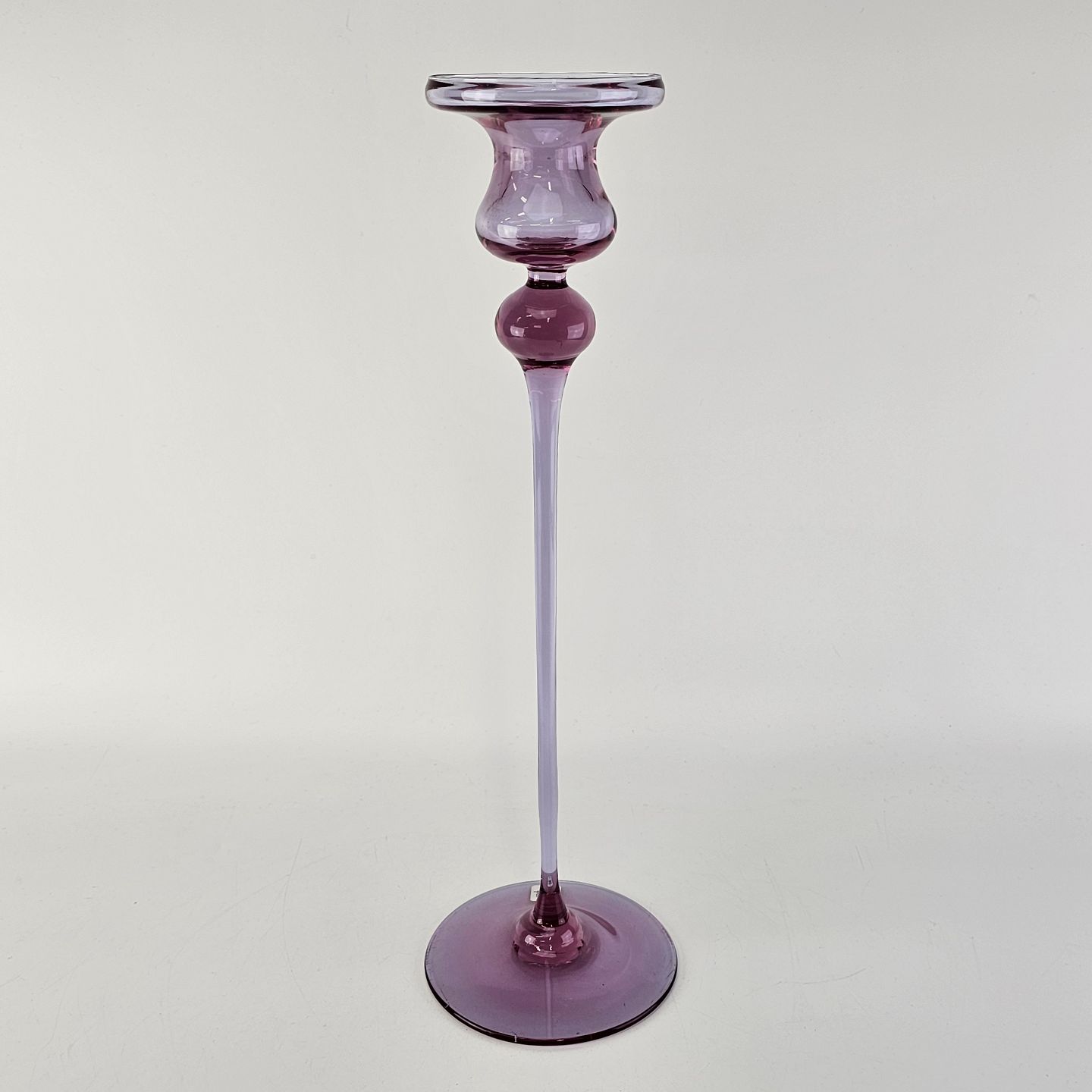 Lysestage i klart lilla glas. Model Cassiopeia