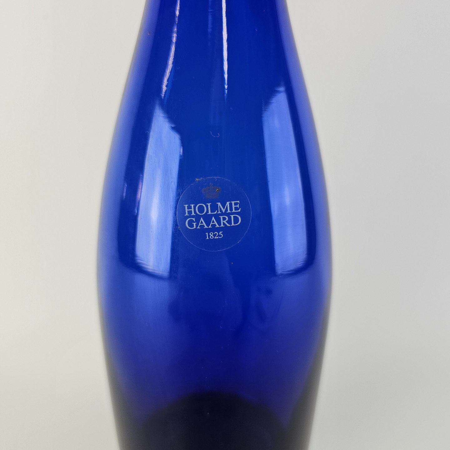 Flaske med prop af blåt klart glas, bund og prop i lysere glas fra serien Harlekin.