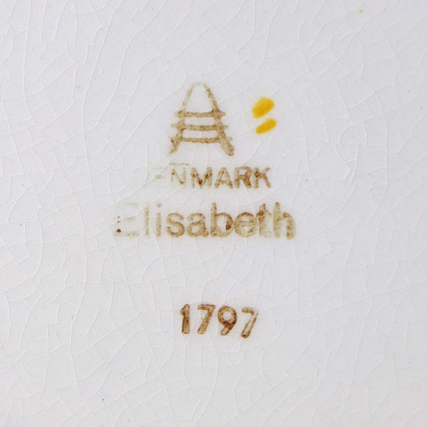 Mindre rundt fad eller vinfad i fajance fra stellet Elisabeth.