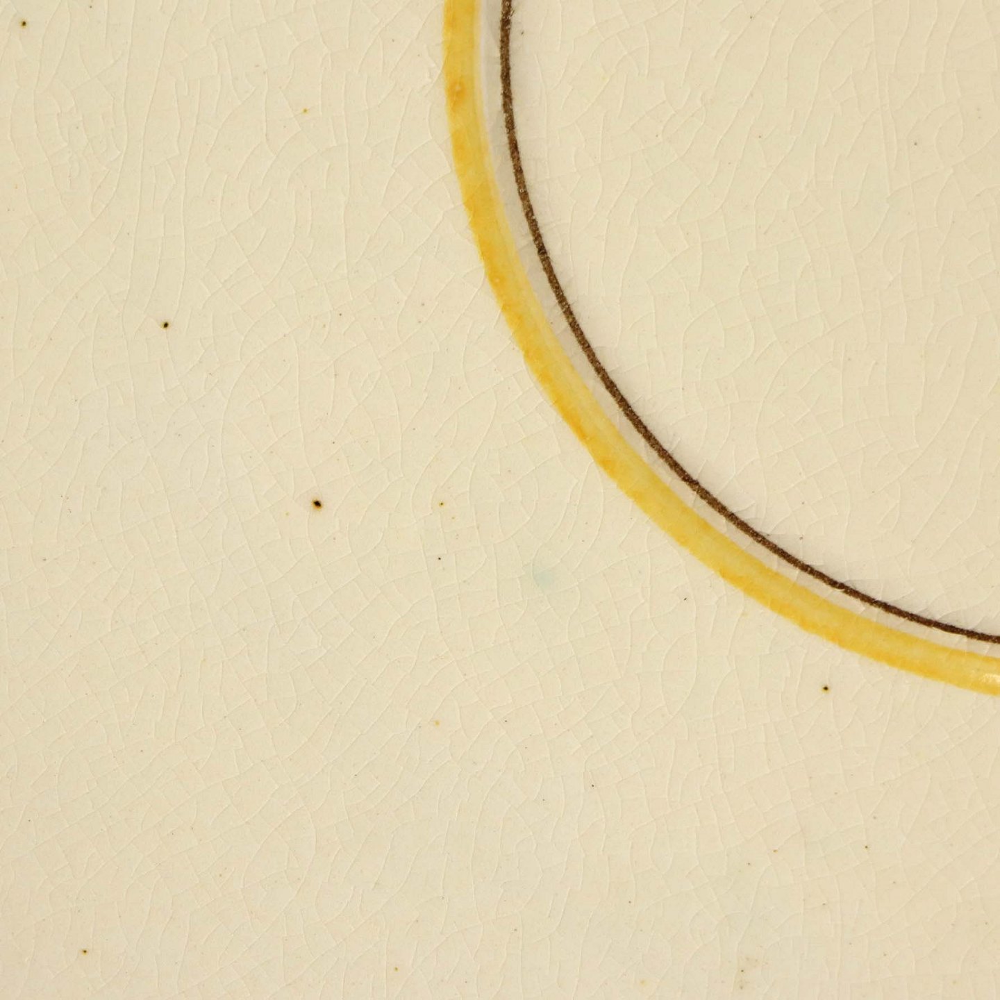 Stel i glat gul fajance med dekoration af farverige og forskelligartede blomster samt med gul og sort kantstreg.