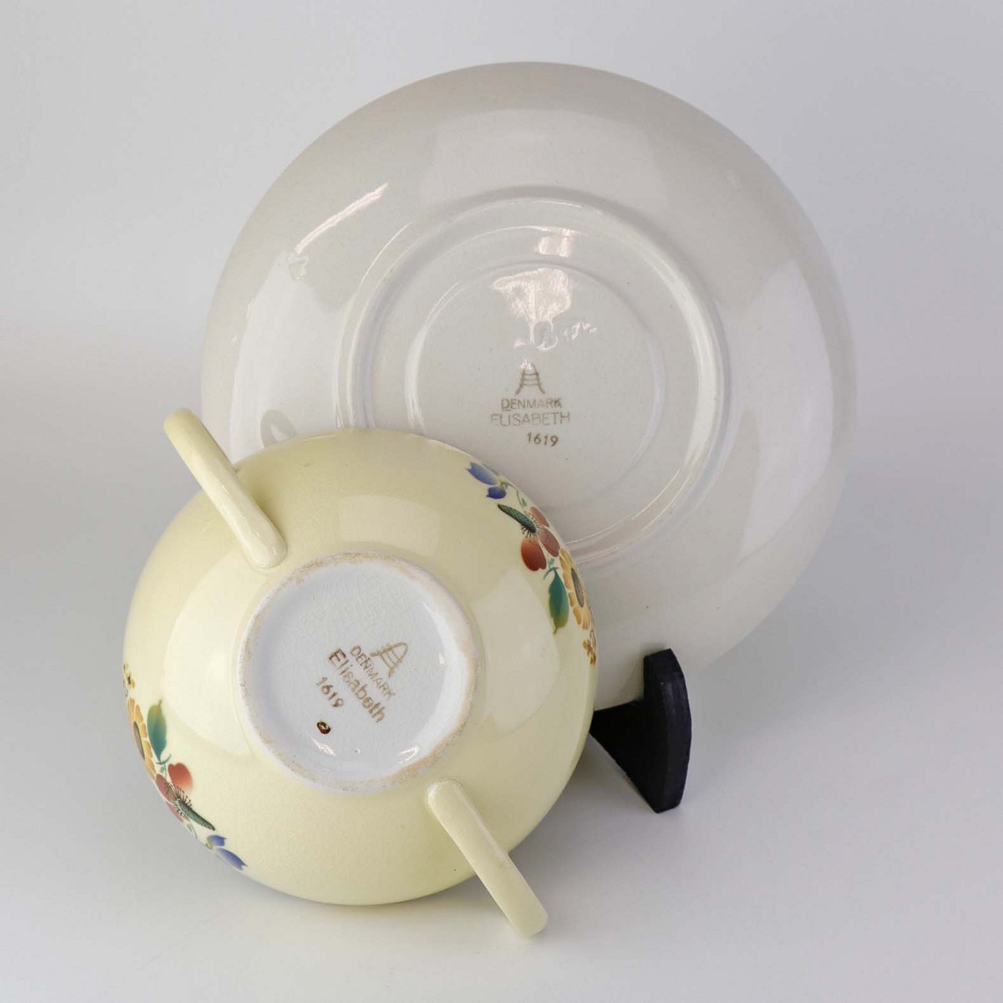 Suppekop med underkop i fajance fra stellet Elisabeth. Nr. 1619