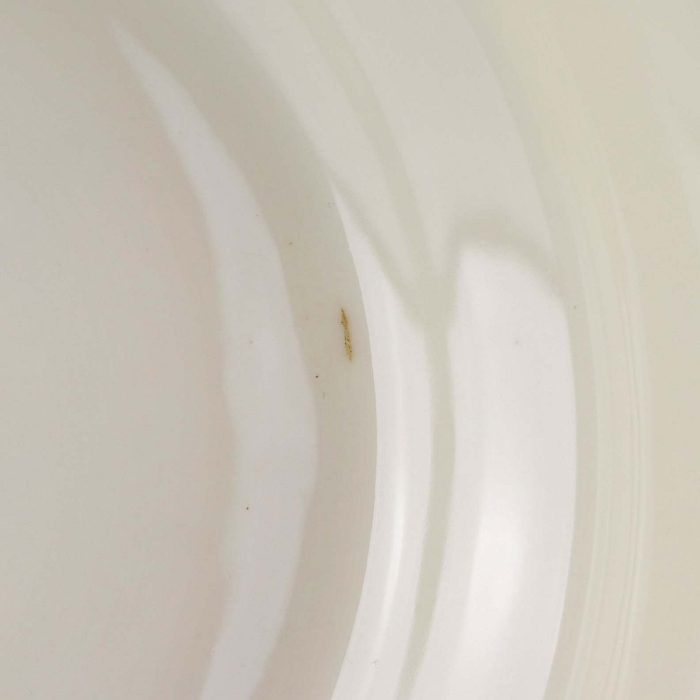 Fremstår med mindre brugsspor i bunden af skålen, ujævnhed i glasuren samt enkelte brune pletter under glasuren.