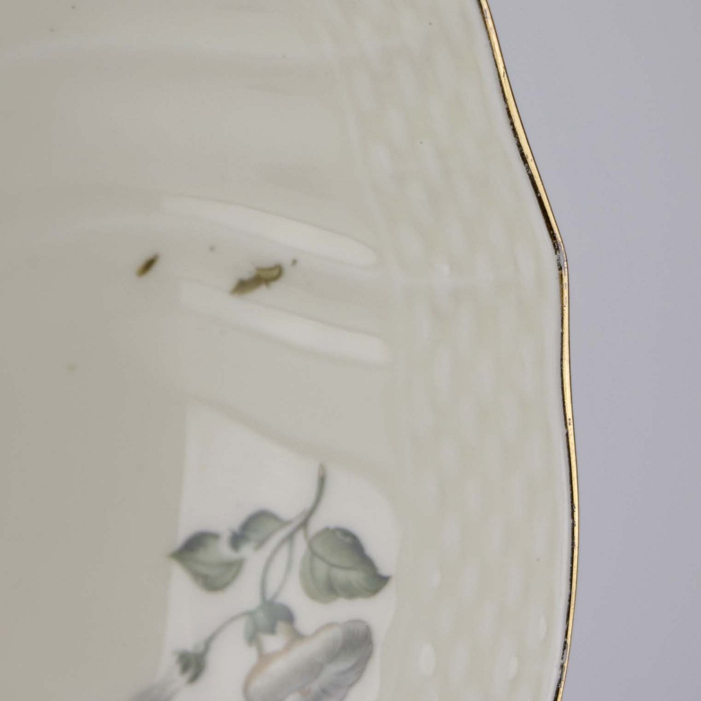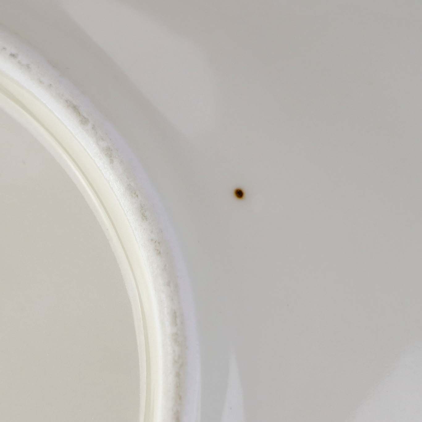 Fremstår med mindre brugsspor ved guldkanten, enkelte brune pletter under glasuren samt enkelte ujævnheder i porcelæn.