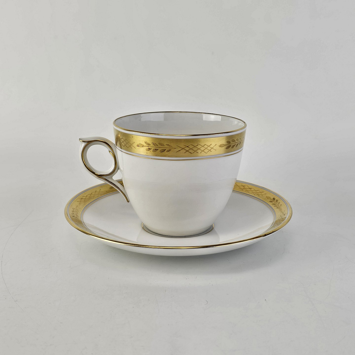 Stel nr. 607 er i hvidt porcelæn og har en guldkant med bladværk