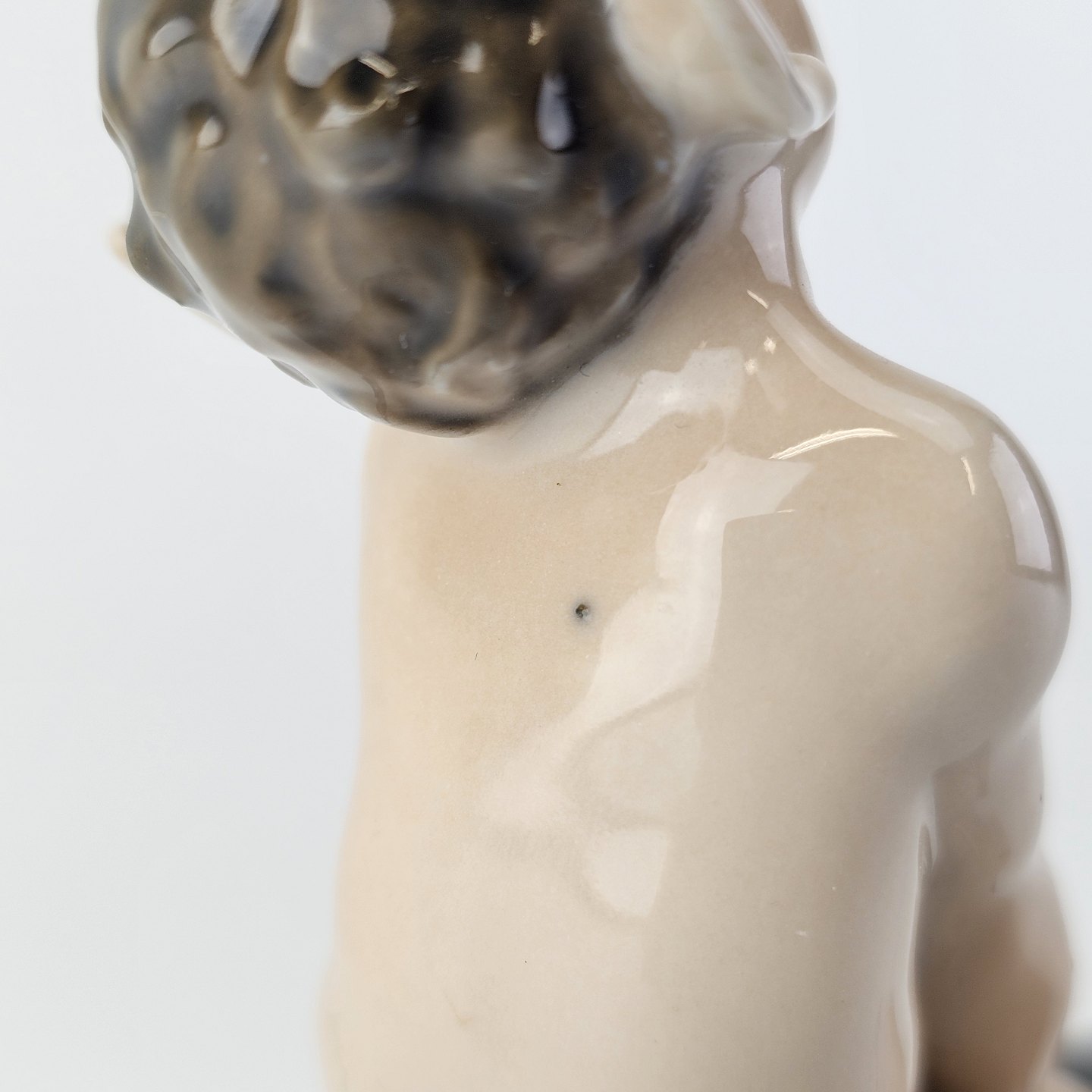 Kongelig figur i porcelæn med motiv af en faun som sidder på ryggen af en skildpadde