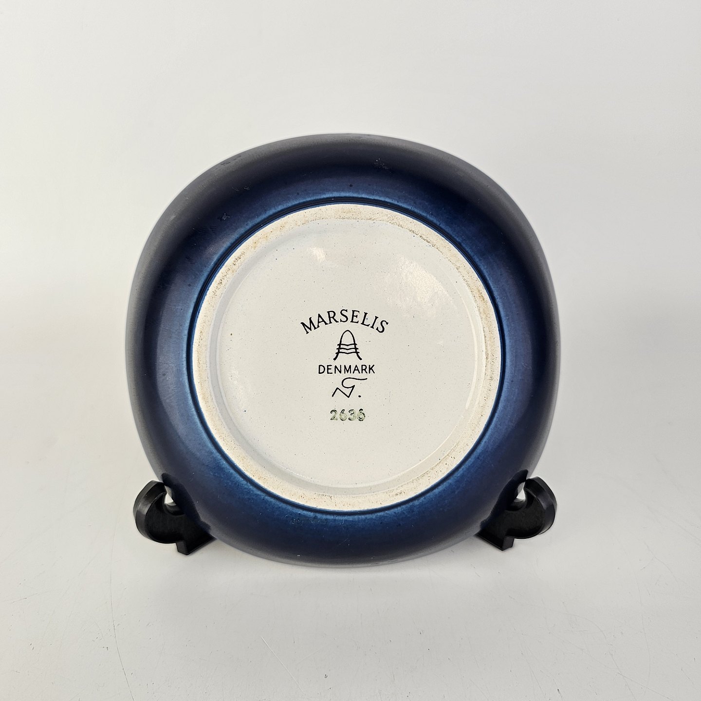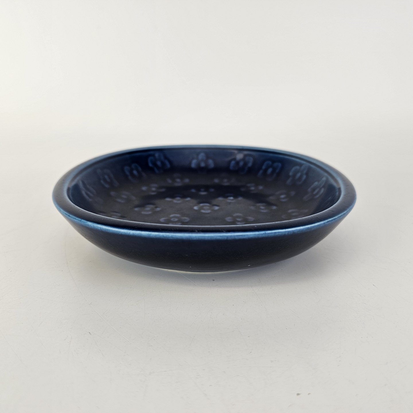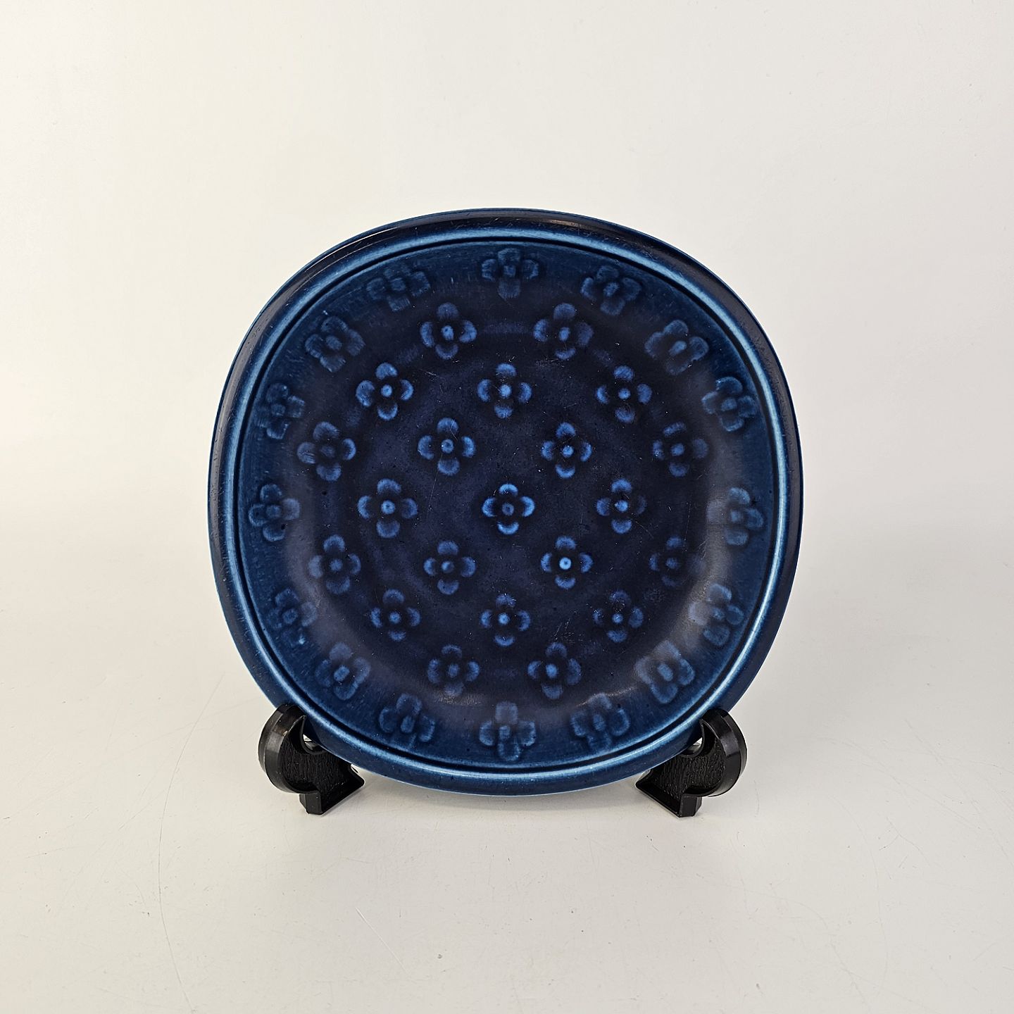 Firkantet Marselis skål i mørkeblå fajance med blomster mønster