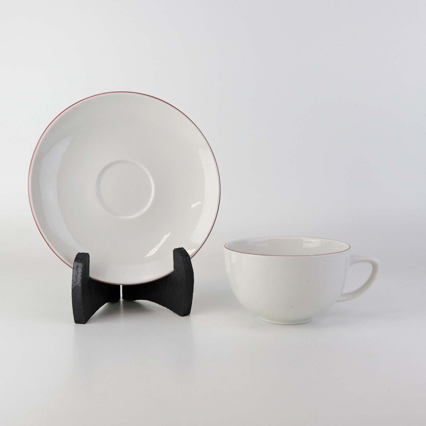 Tekop med underkop i kongeligt porcelæn fra stellet Rødtop - også kaldet rødkant. Nr. 6231