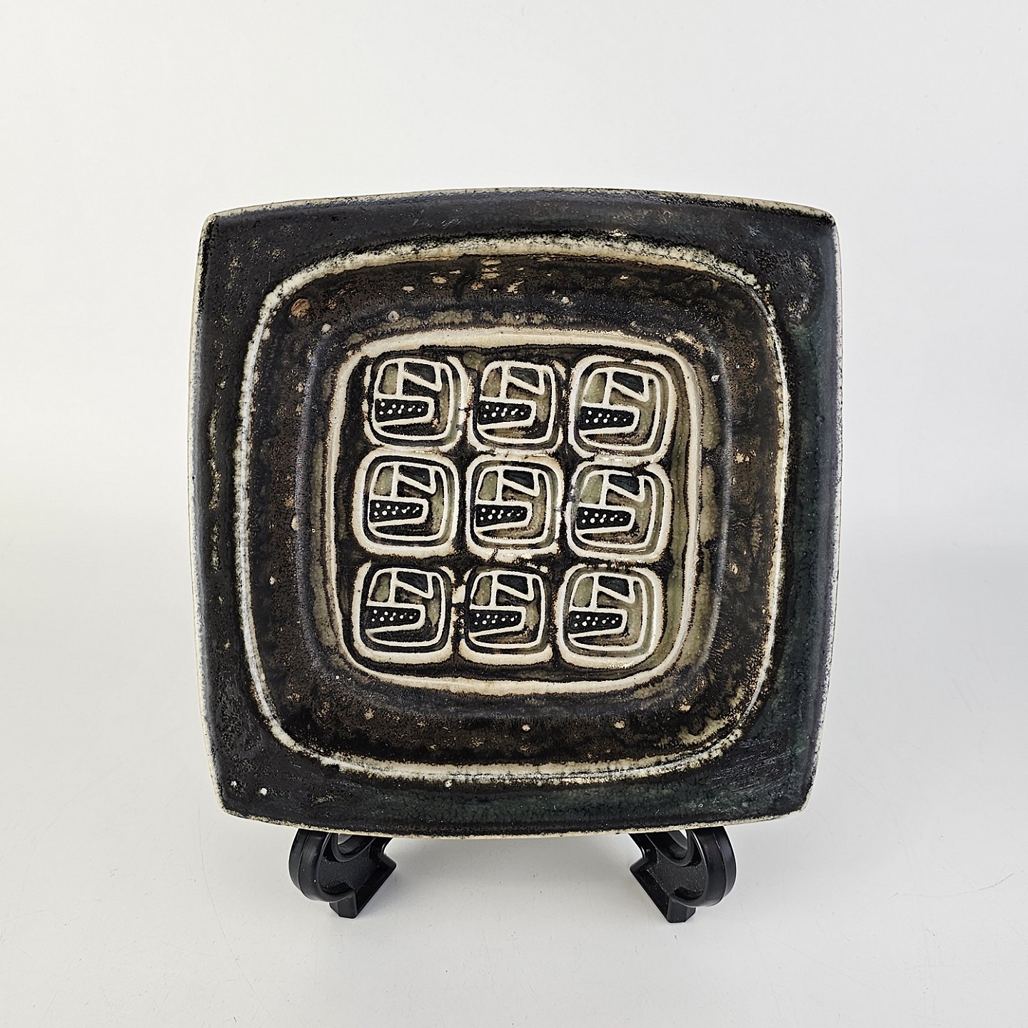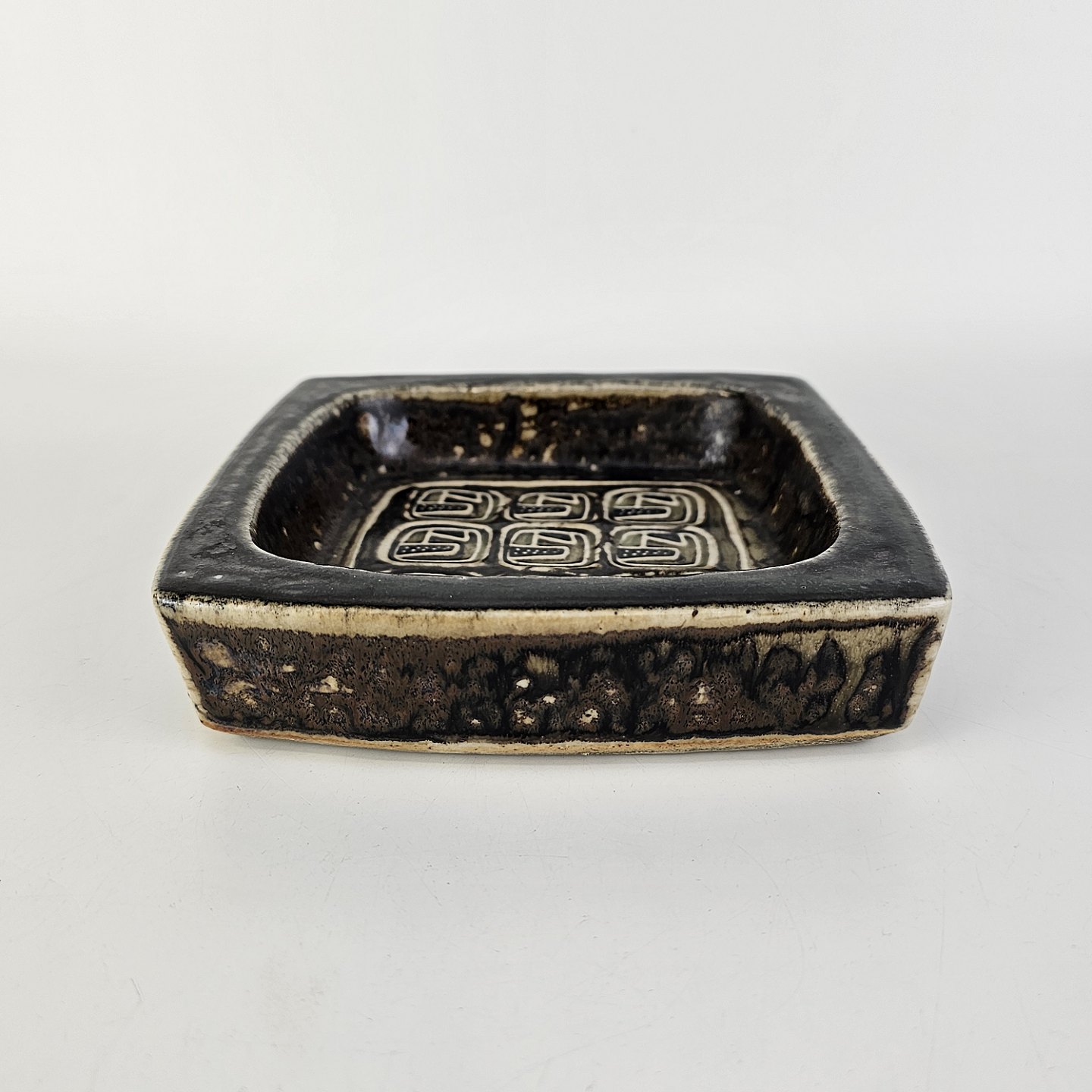 Askebæger i stentøj med abstrakt dekoration i bunden