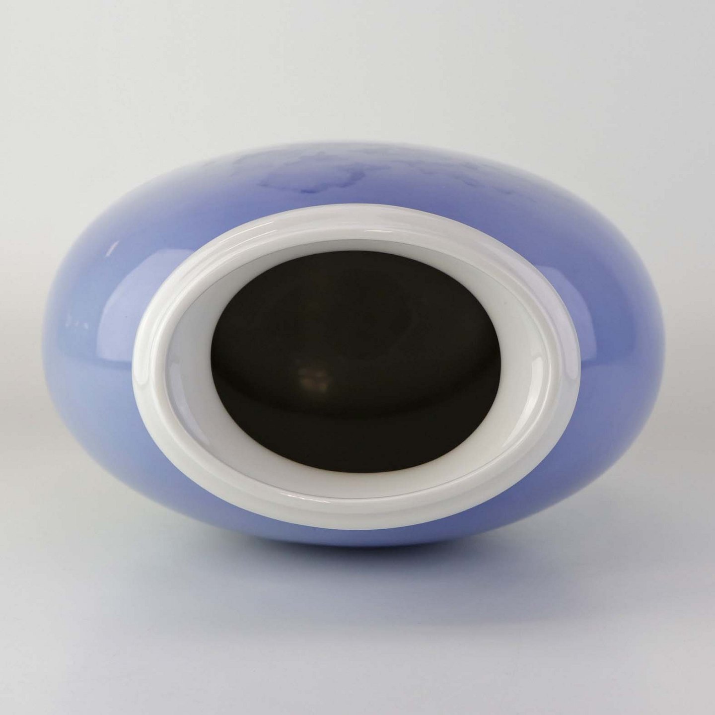Oval jubilæumsvase i kongelig porcelæn med motiv af Danfoss fabriksbygninger. Nr. 3088
