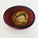 Unika skål i glas med abstrakt mønster i røde, sorte, gule og grønne nuancer