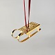 To juleornamenter til ophæng med form af en snemand og en kælk i messing forgyldt med 24 karat guld