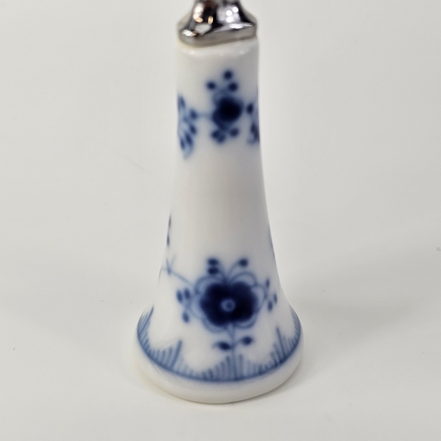 Oplukker i kongeligt porcelæn med hoved i rustfrit stål fra stellet Musselmalet.