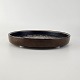 Flad rund skål i fajance fra Baca serien med mønster i brune nuancer