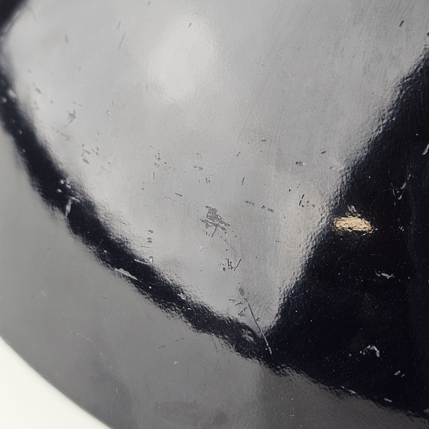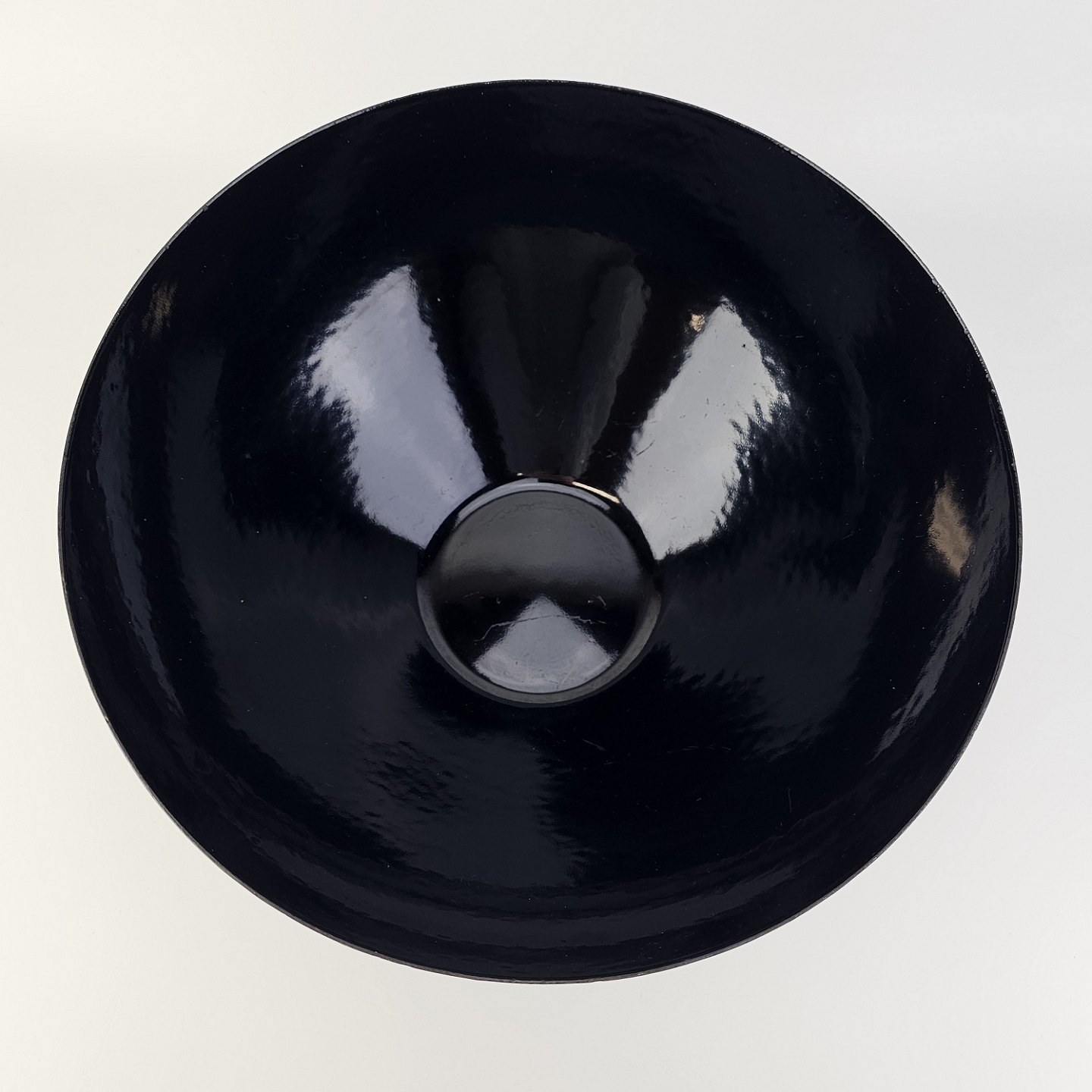Krenit skål af sort metal med sort emalje indvendigt og udvendigt