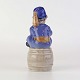 Figur i porcelæn med motiv af siddende dreng på tønde blæsende på et horn. Nr. 3689
