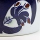 Vase i fajance fra Tenera serien med let krakkeleret glasur og blåt abstrakt blomstermønster. Nr. 207/2967