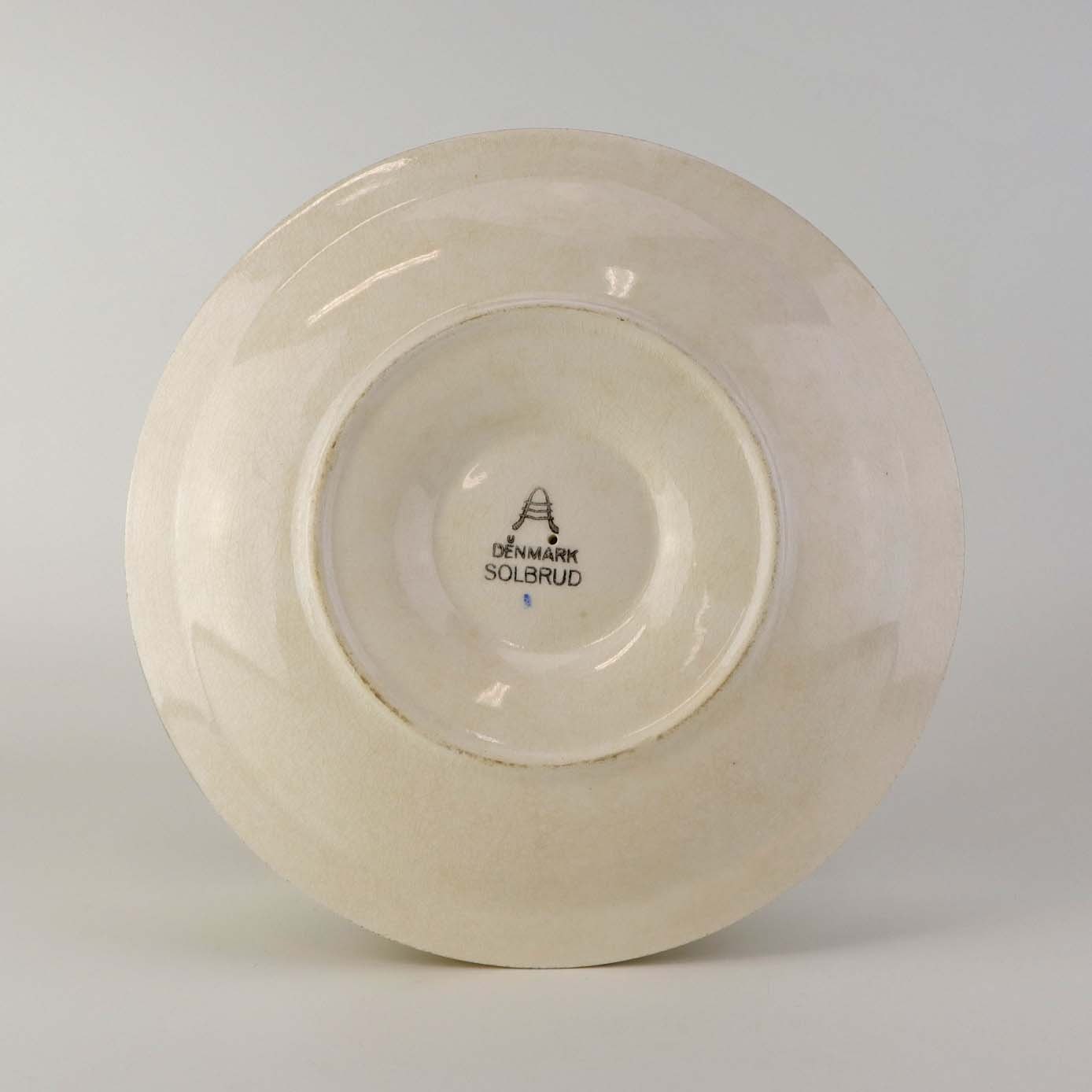 Sovseskål på fast fod i fajance fra stellet Solbrud fremstillet i perioden 1937-1967