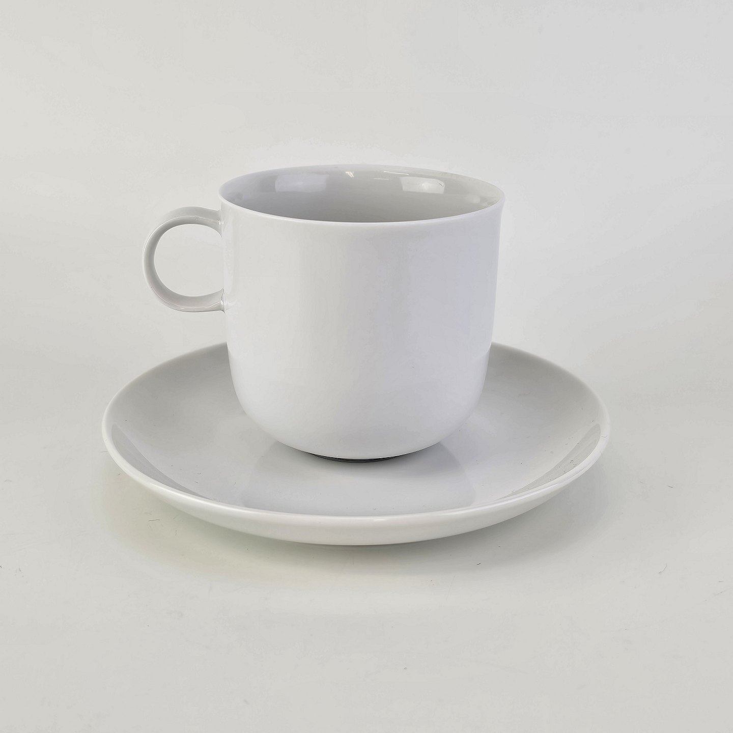 Kop og underkop i hvidt porcelæn fra stellet Alev Siesbye Hvid/Leda