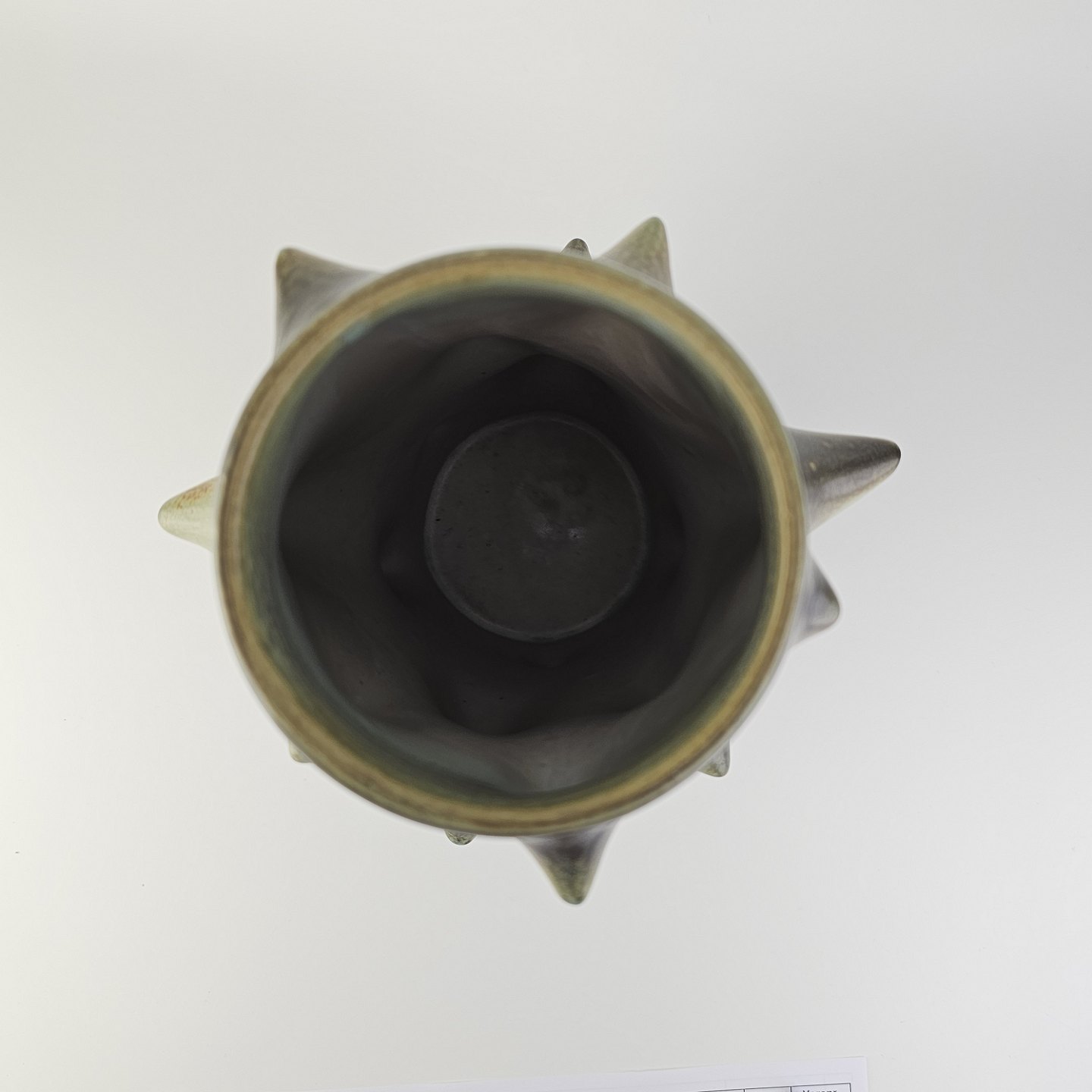 Vase i glaseret stentøj med motiv af en rosenthorn