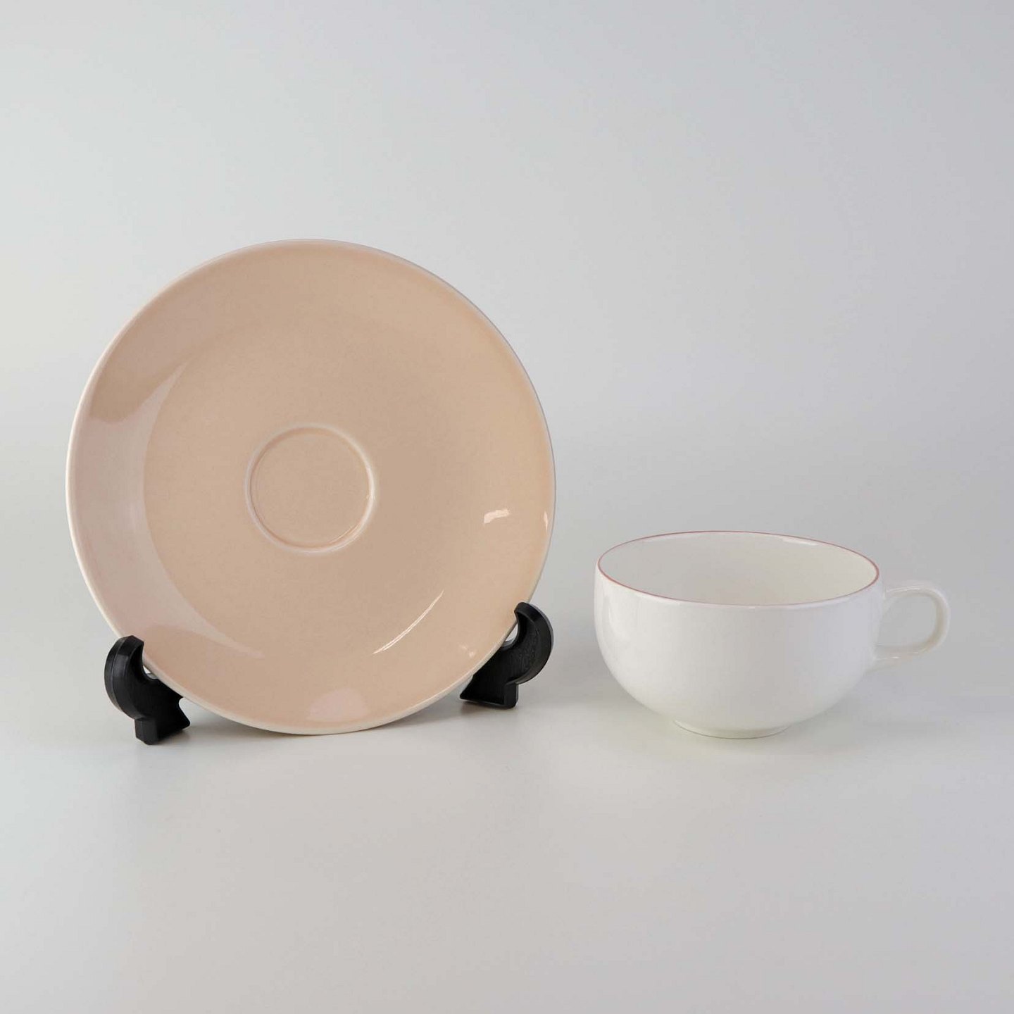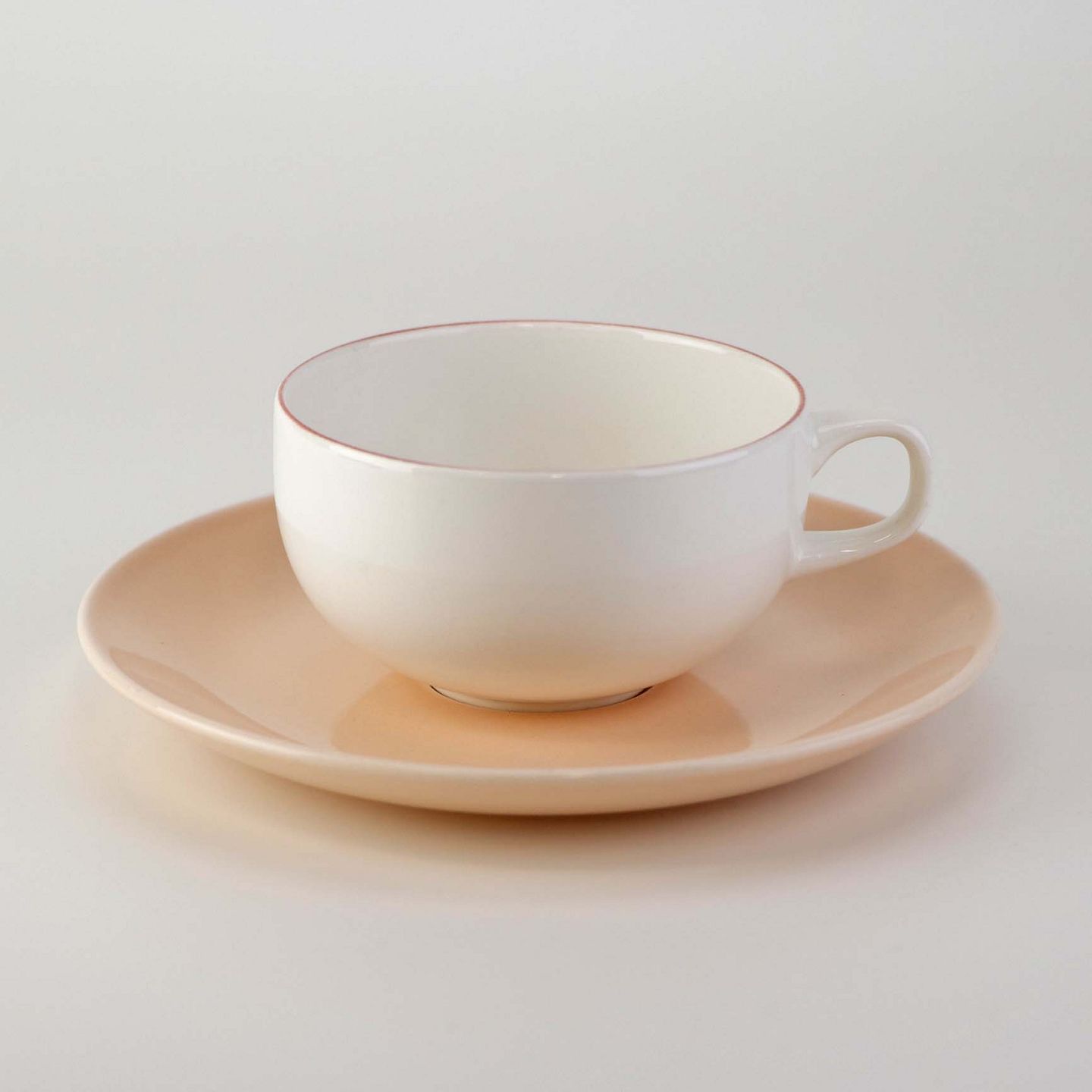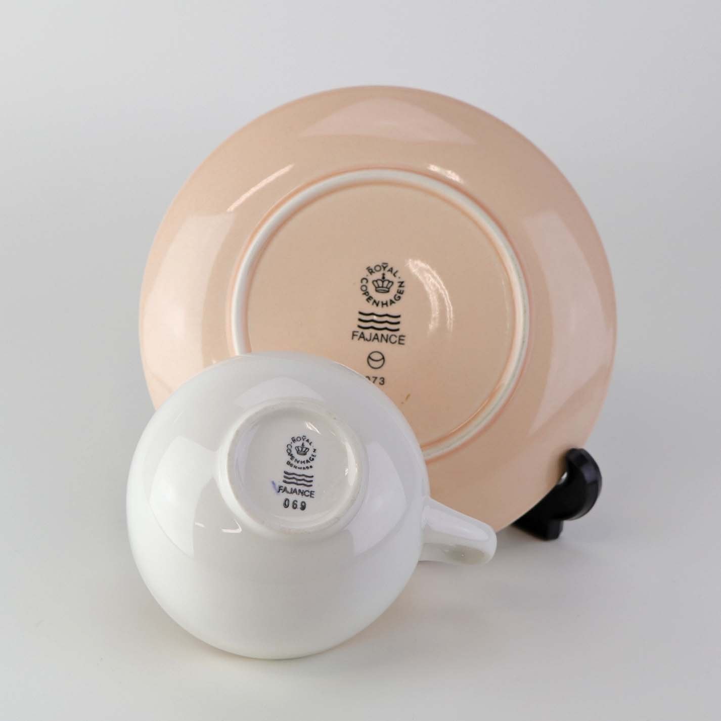 Lille morgenkop i fajance med rosa underkop fra stellet 4 All seasons nr. 069 og 073