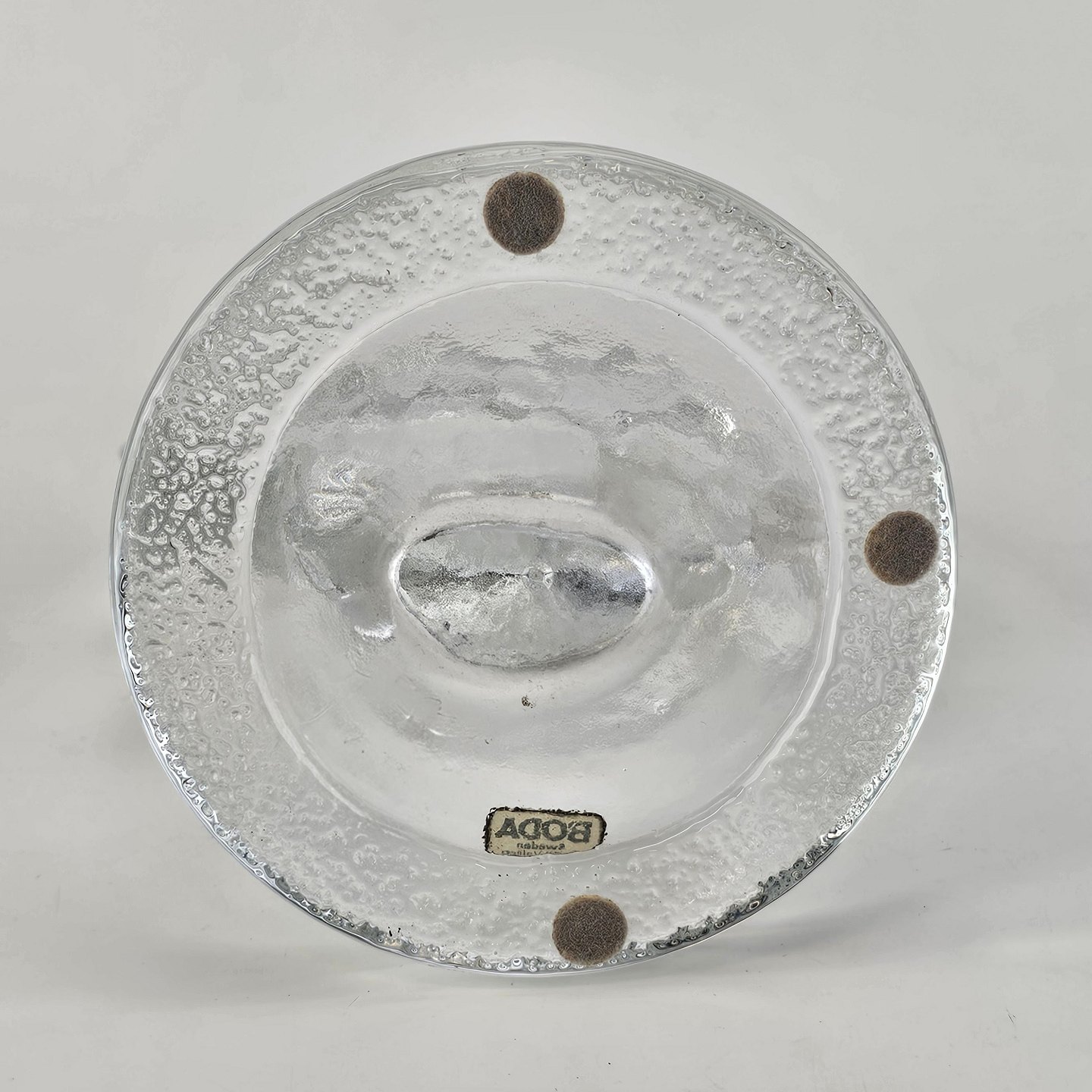 Skulptur i glas med motiv af et menneske i profil, en fugl og et hjerte
