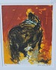 Litografi i sorte, røde og gule nuancer i metal ramme. 71/200